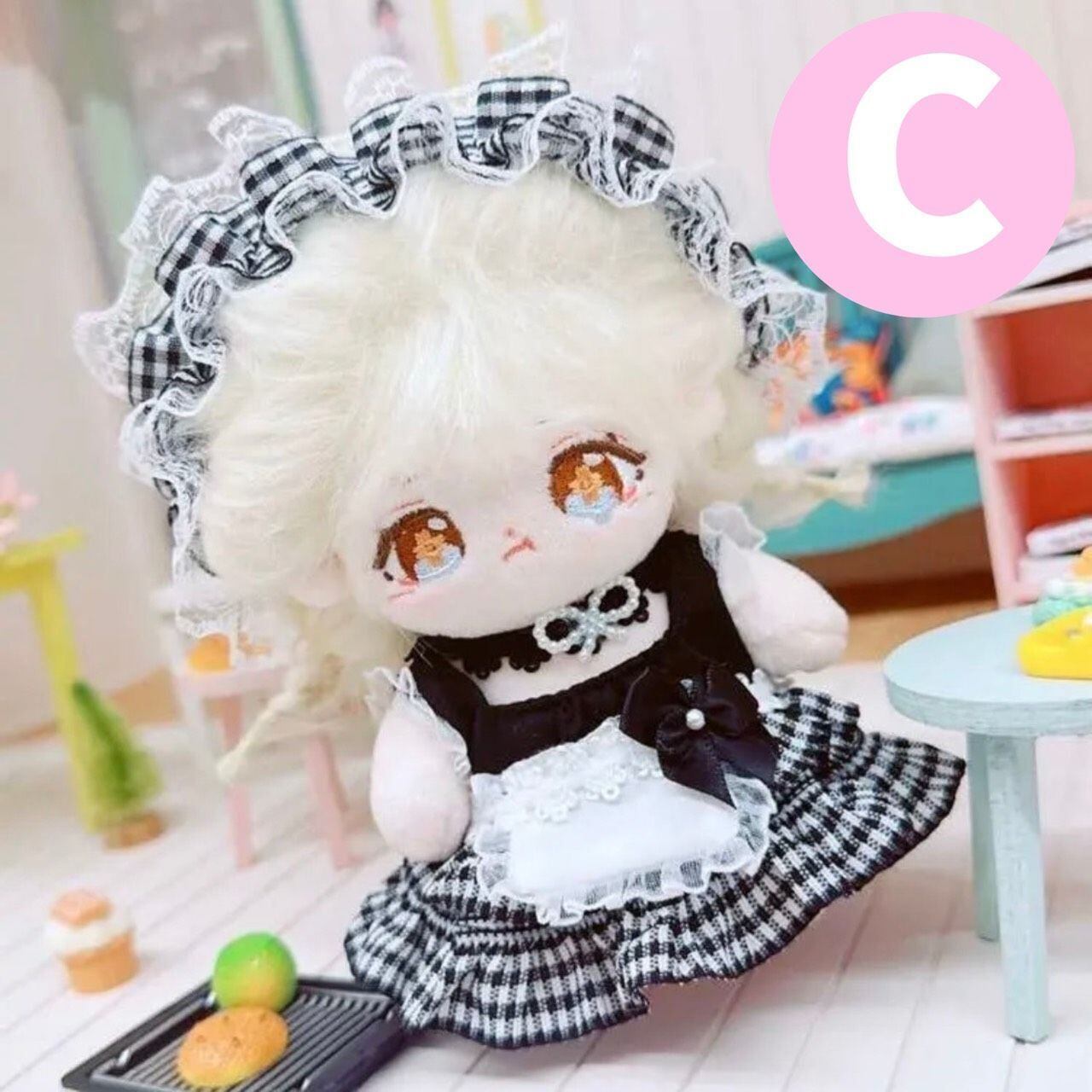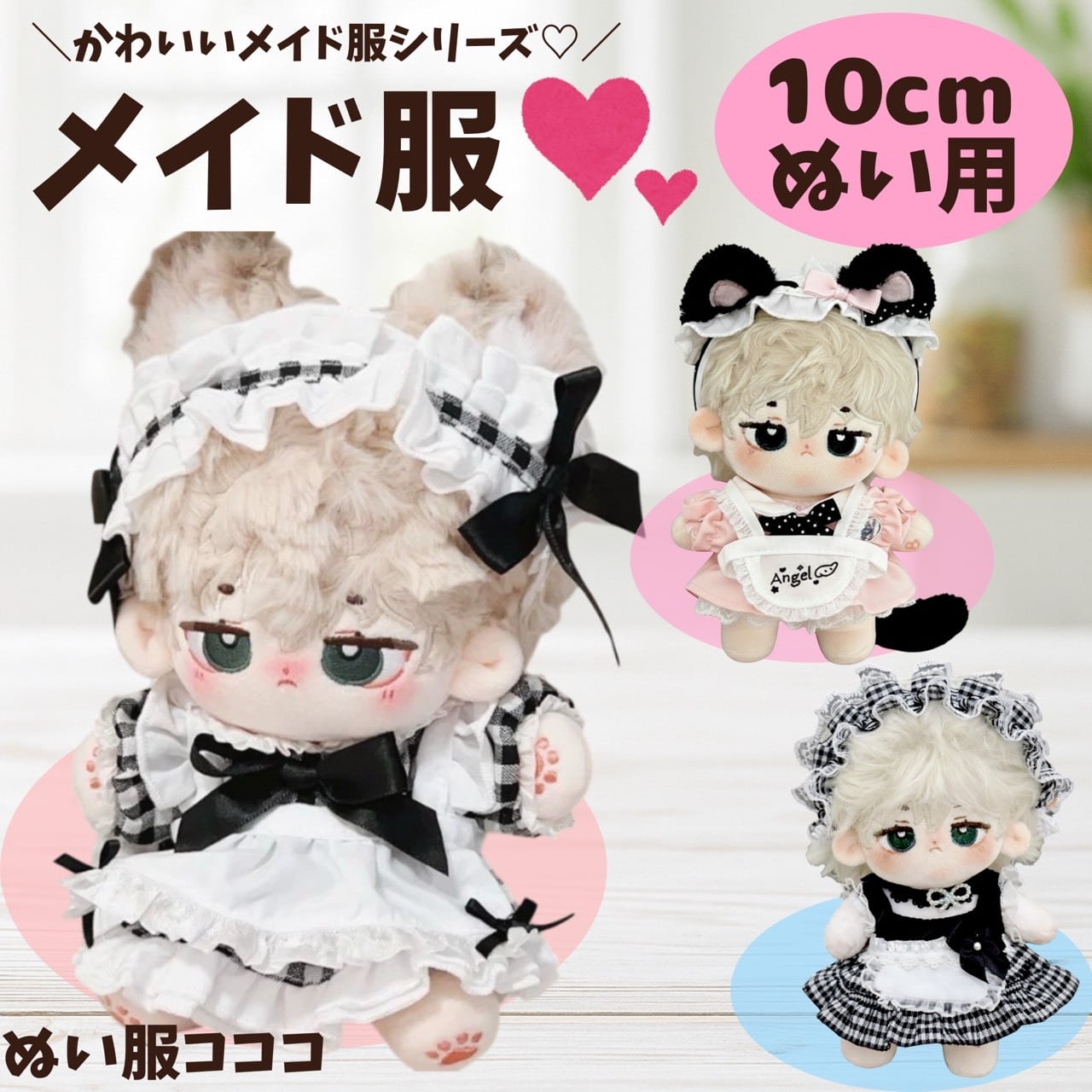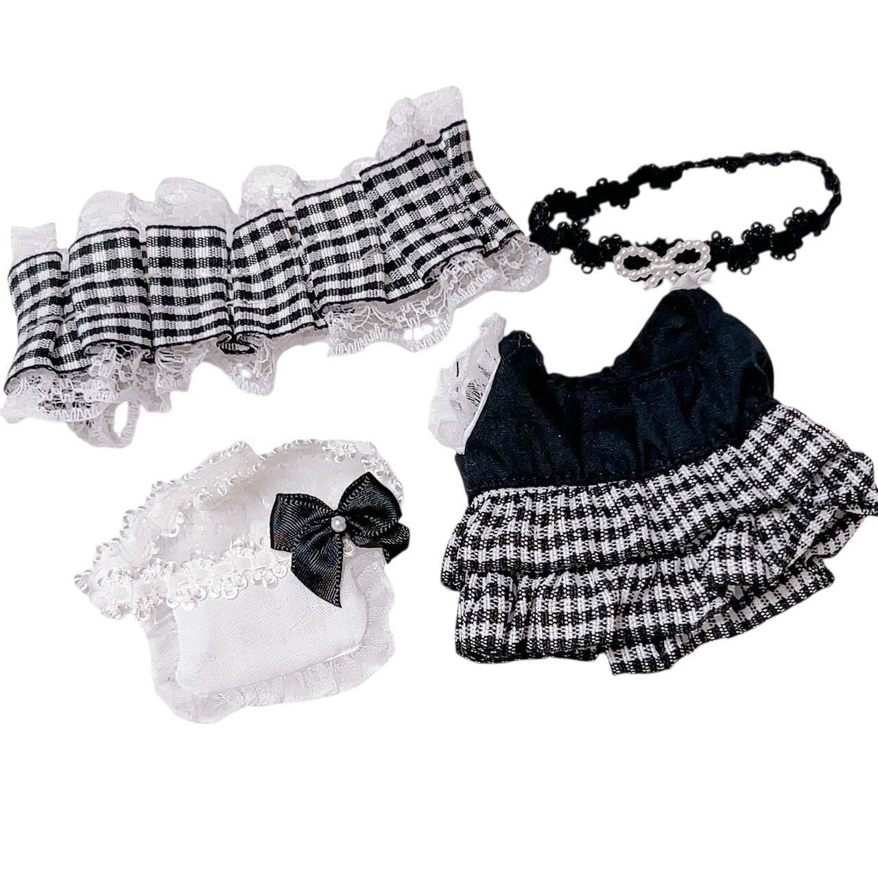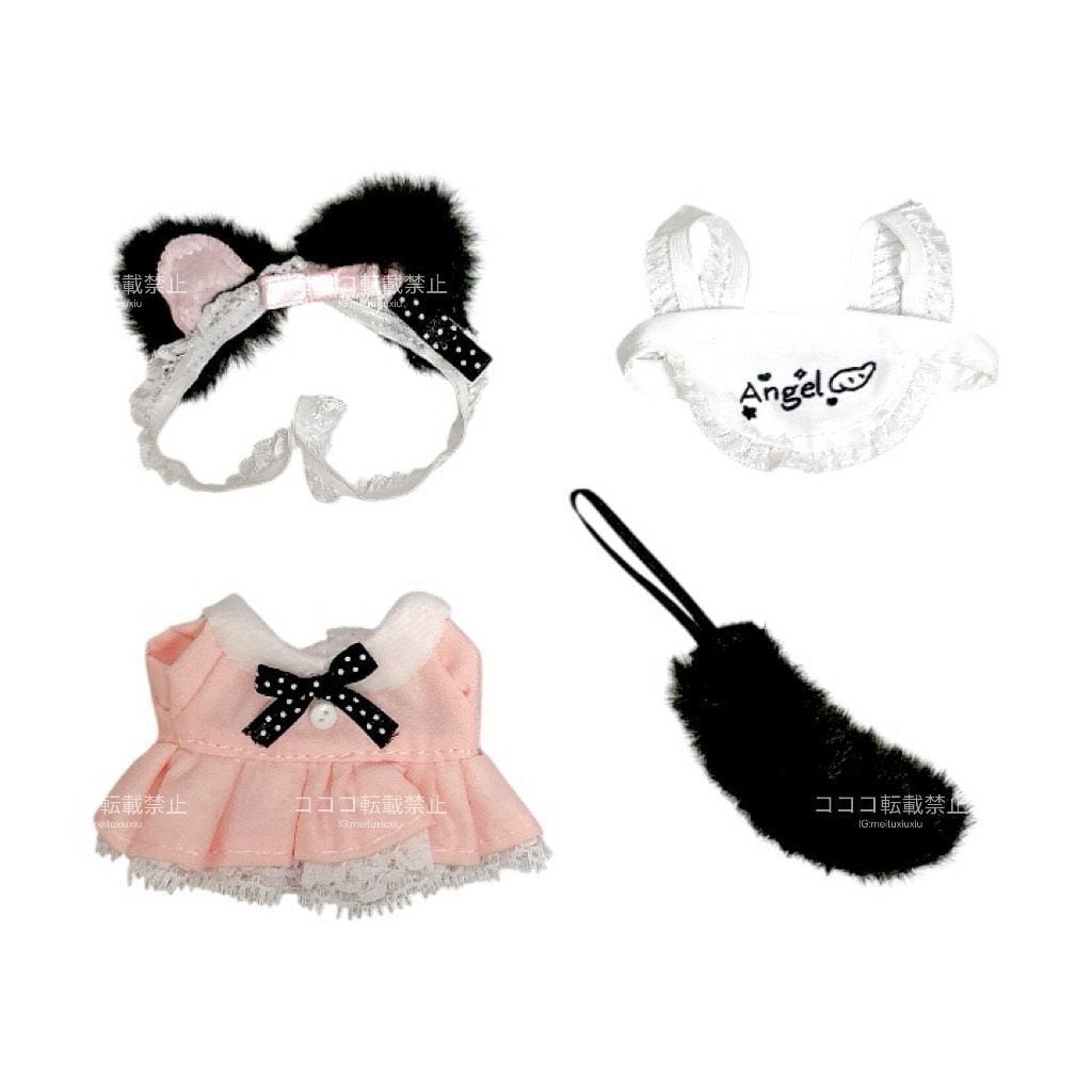 10cm ぬい服 選べるかわいい メイド服 チェック リボン エプロン 猫耳 ヘッドドレス チョーカー 黒ピンク ブラック ぬいぐるみ用 服 着ぐるみ ちびぐるみ にじぱぺっと いつぬい 10~12cm ぬい活 推しぬい ぬい服コココ