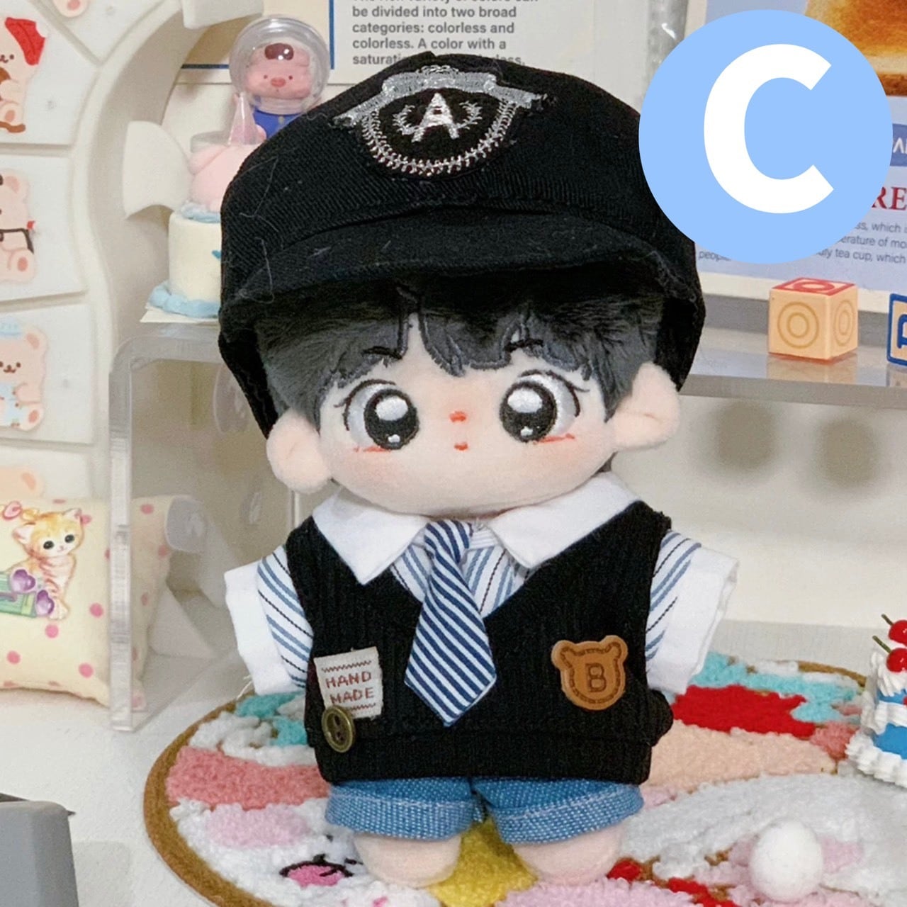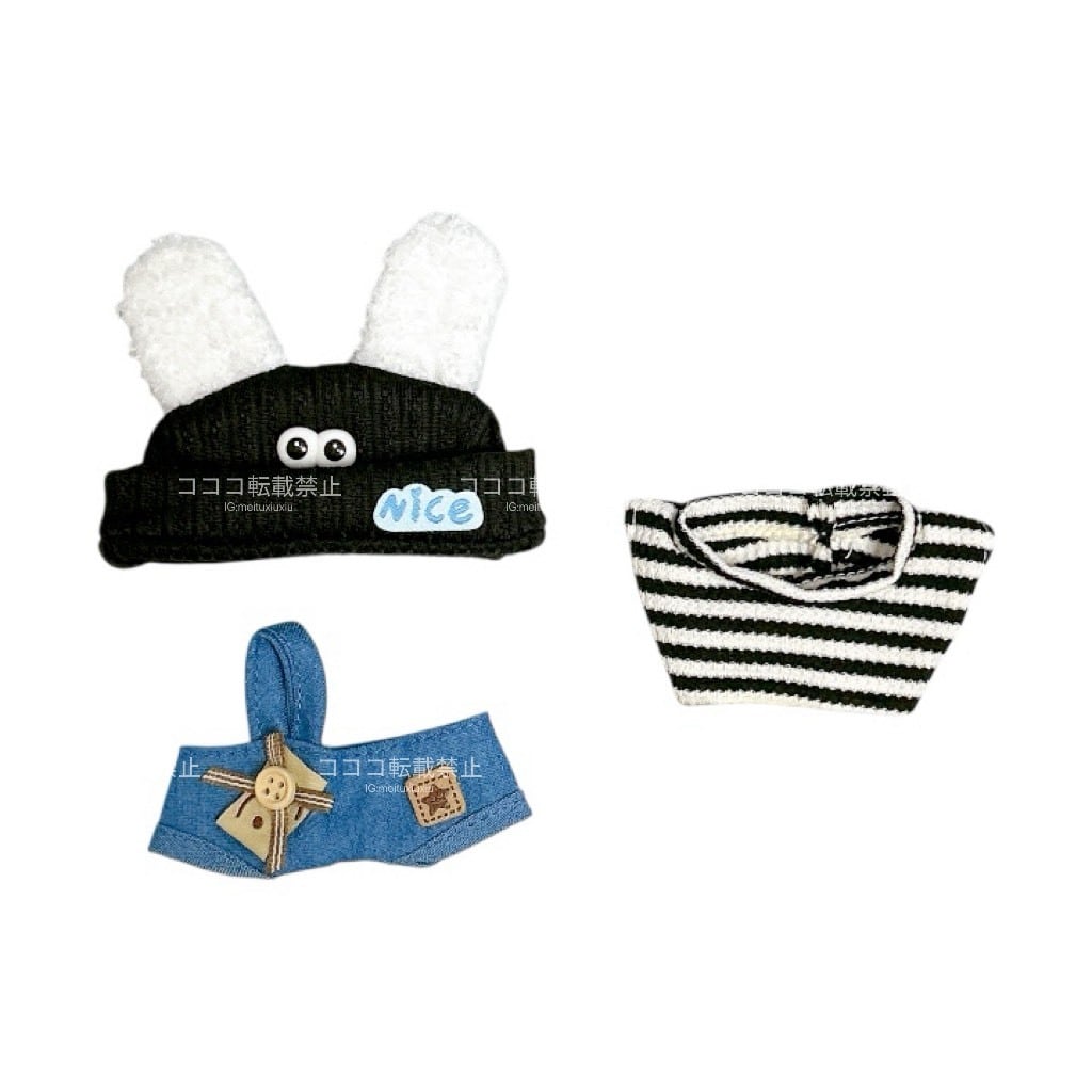 【10cm】 ぬい服 かわいい ストリート系 黒コーデセット ブラック ボーダー チェック キャップ帽子ニット帽 着ぐるみ服 ぬいぐるみ用 服 着ぐるみ ちびぐるみ にじぱぺっと いつぬい 10~12cm ぬい活 推しぬい ぬい服コココ