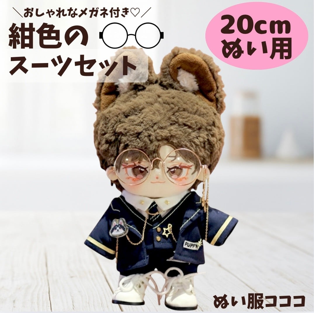 ぬい服 おしゃれ 青 スーツ 全身セット 眼鏡付き