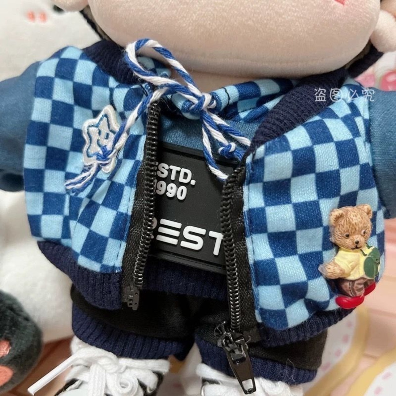 【10cm.20cm】 ぬい服 かっこいい 青色 韓国風 ストリートコーデ 着ぐるみ服 ぬいぐるみ用 服 着ぐるみ ちびぐるみ にじぱぺっと いつぬい 10~12cm ぬい活 推しぬい ほわぬい 棉花娃娃 小物 ラブブ labubu 推し活