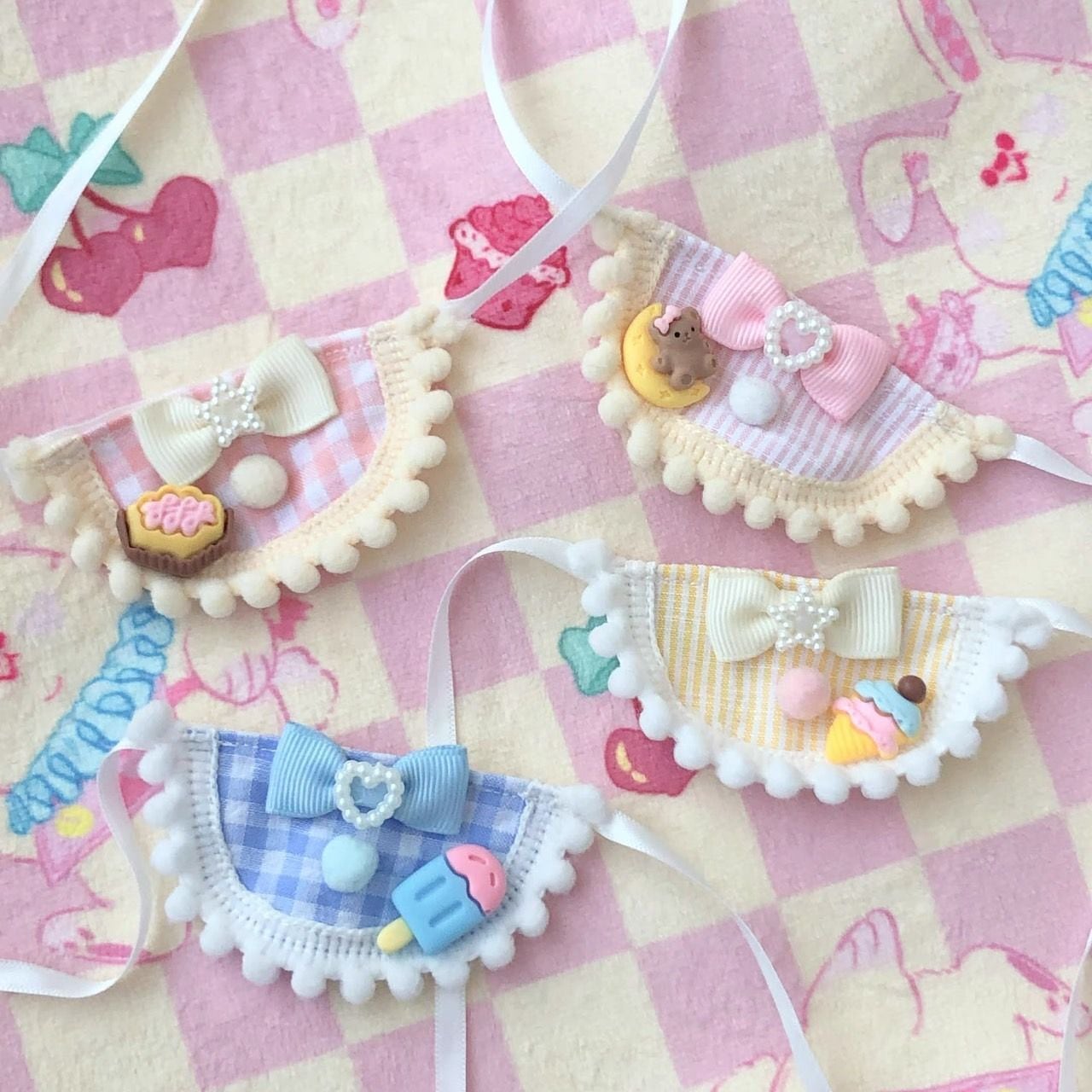 【10cm】 ぬい服 かわいい ブルー チェック柄のスタイ 青色 ブルー ピンク 着ぐるみ服 ぬいぐるみ用 服 着ぐるみ ちびぐるみ にじぱぺっと いつぬい 10~12cm ぬい活 推しぬい ほわぬい 棉花娃娃 小物 ラブブ labubu 推し活