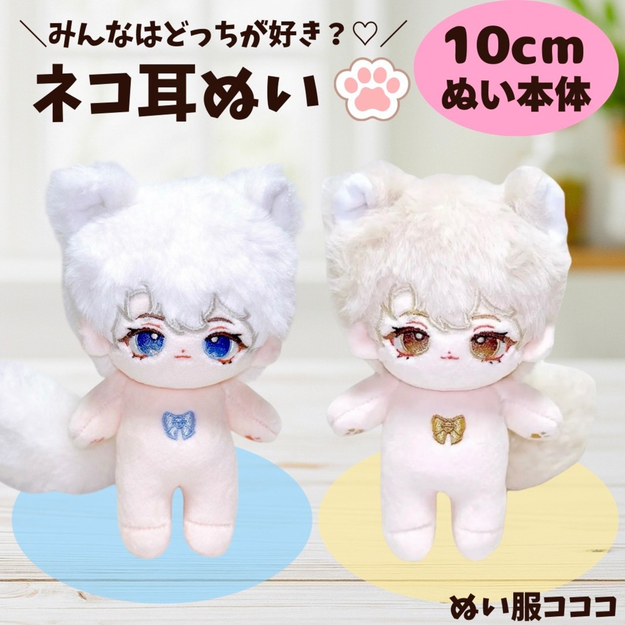 【10cmぬい本体】 スケルトン入り 骨 尻尾 ぬいぐるみ リボン 金髪 白髪 ゴールド シルバー 男の子 猫耳 無属性 着せ替えぬいぐるみ 棉花娃娃 綿人形 cotton doll ちびぬいぐるみ 12cm ぬい活 推しぬい