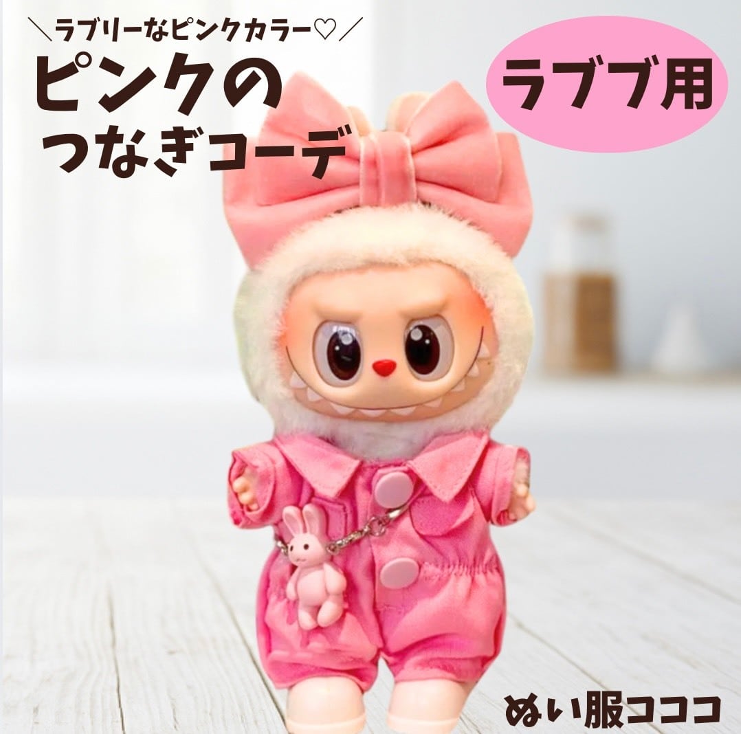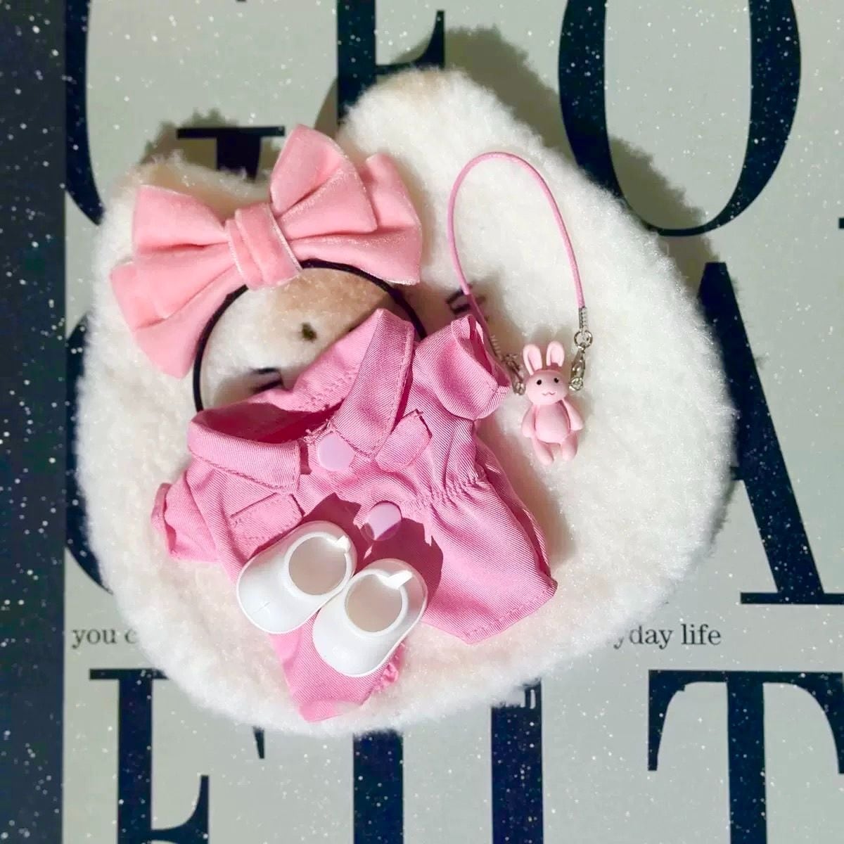 ラブブ服 LABUBU ぬい服 ラブブ着せ替え服 かわいい ピンクのお洋服セット 靴つき オーバーオール リボンカチューシャ うさぎのポシェット付き つなぎ 作業着 ぬいぐるみ用 服 ぬい活 小物 labubu 推し活
