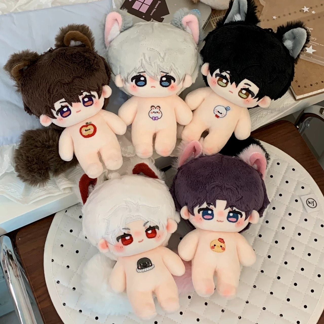 ぬい本体【10cm】 スケルトンあり 骨 無属性 ぬいぐるみ 人形 棉花娃娃 綿人形 cotton doll 猫耳 尻尾 白髪 うさぎの刺繡入り L589