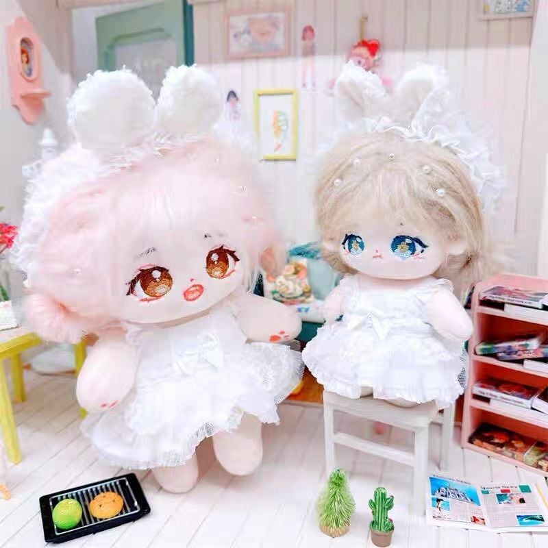 10cm.20cm ぬいぐるみ服 人形 サウェディング風 真っ白ドレス 羽根つき うさ耳ヘッドドレス ワンピース アクセサリー おしゃれ ぬい活 推しぬい ちびぐるみ 棉花娃娃 いつぬい ぬい服コココ E612