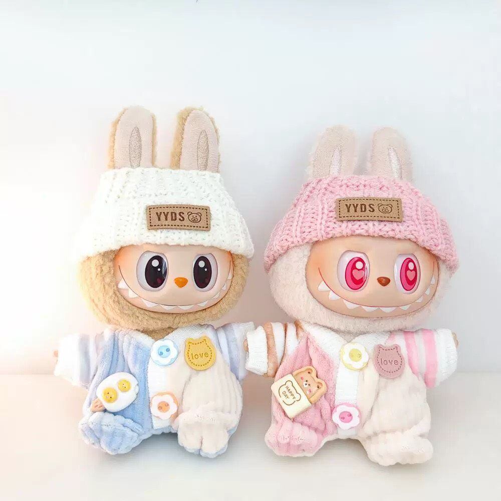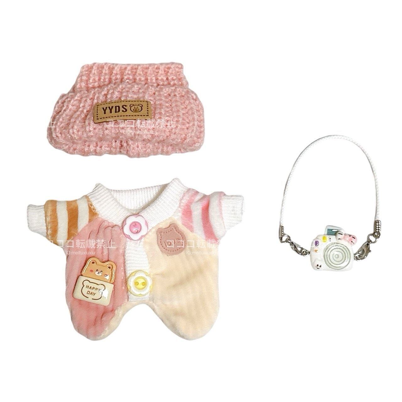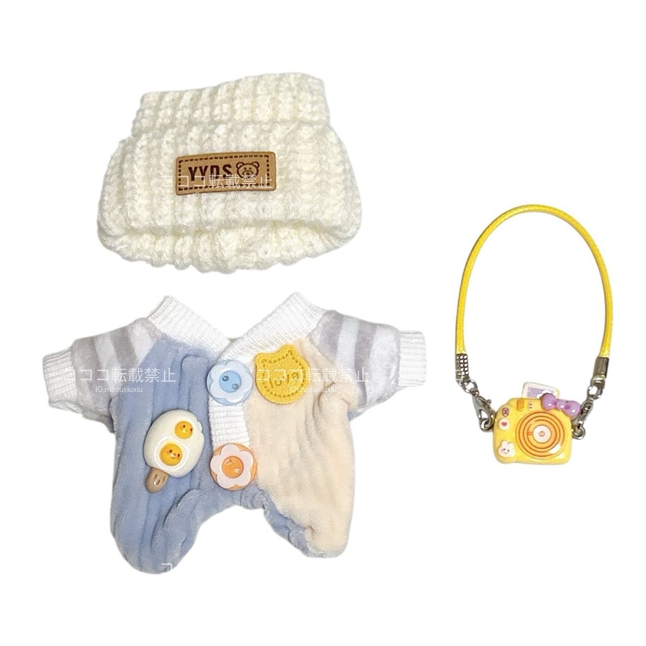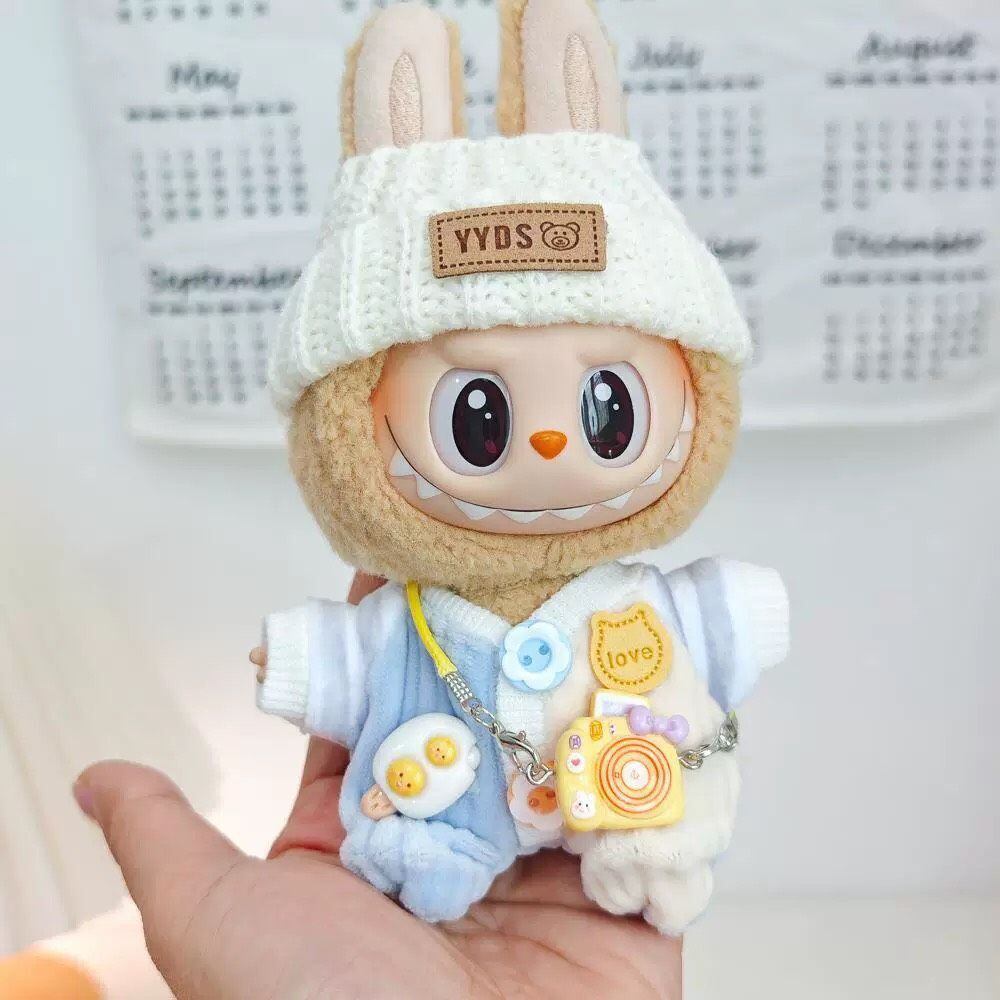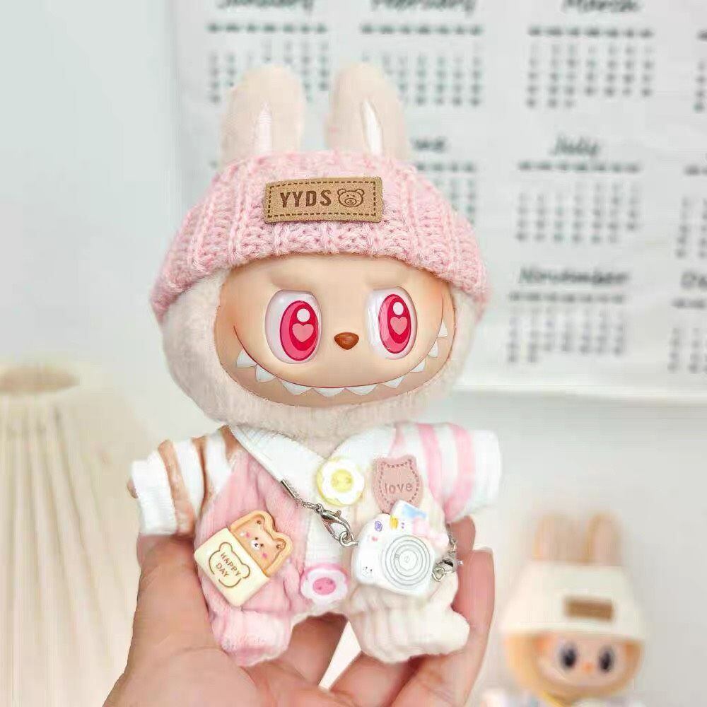 Labubu 着せ替えコスチューム パジャマコーデ 寝巻き ベビー服 カメラ ニット帽 ピンク ブルー ぬい活 ラブブ ぬいぐるみ エナジー ハブシ マカロン 17cm 1世代 2世代 3世代 ぬい服コココ F381