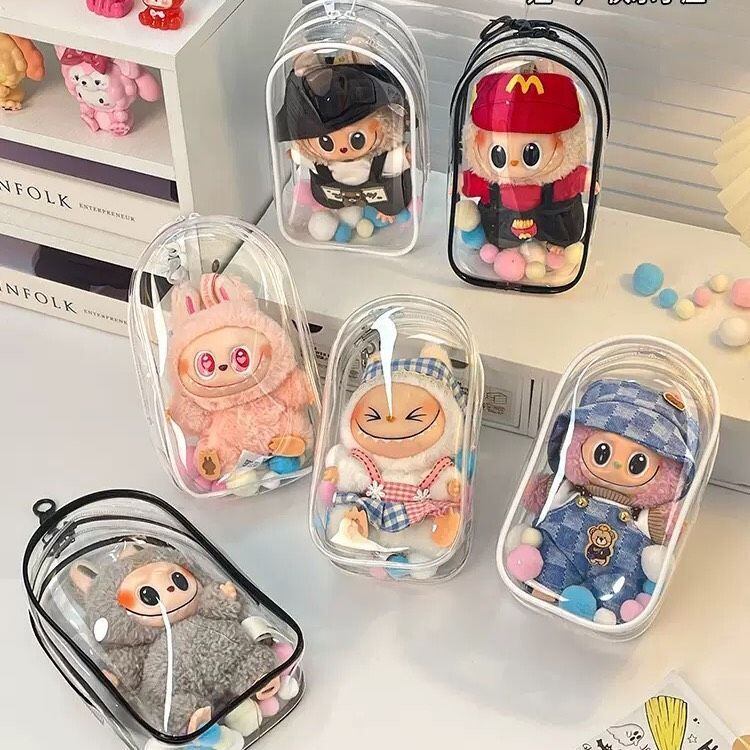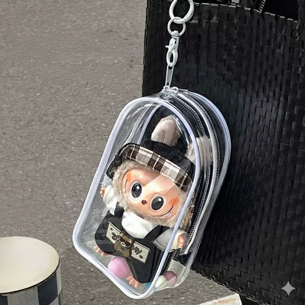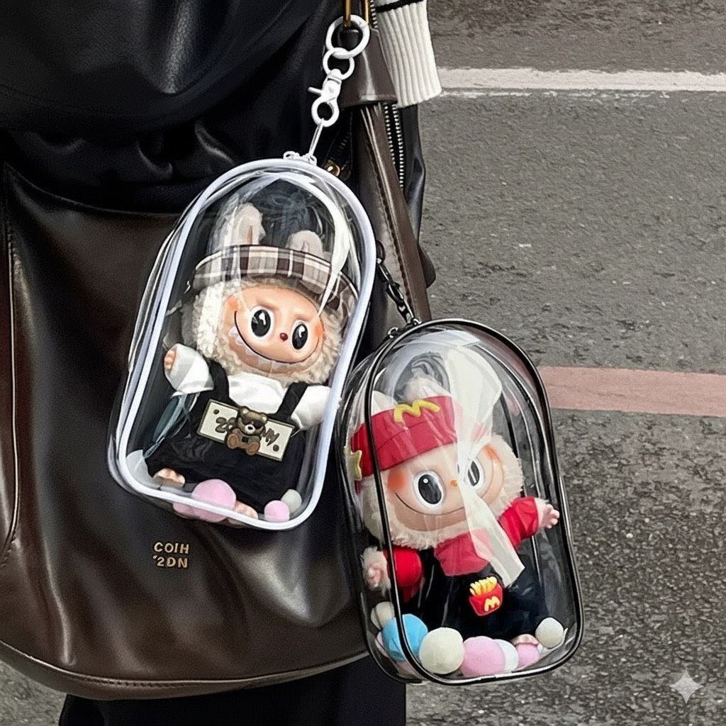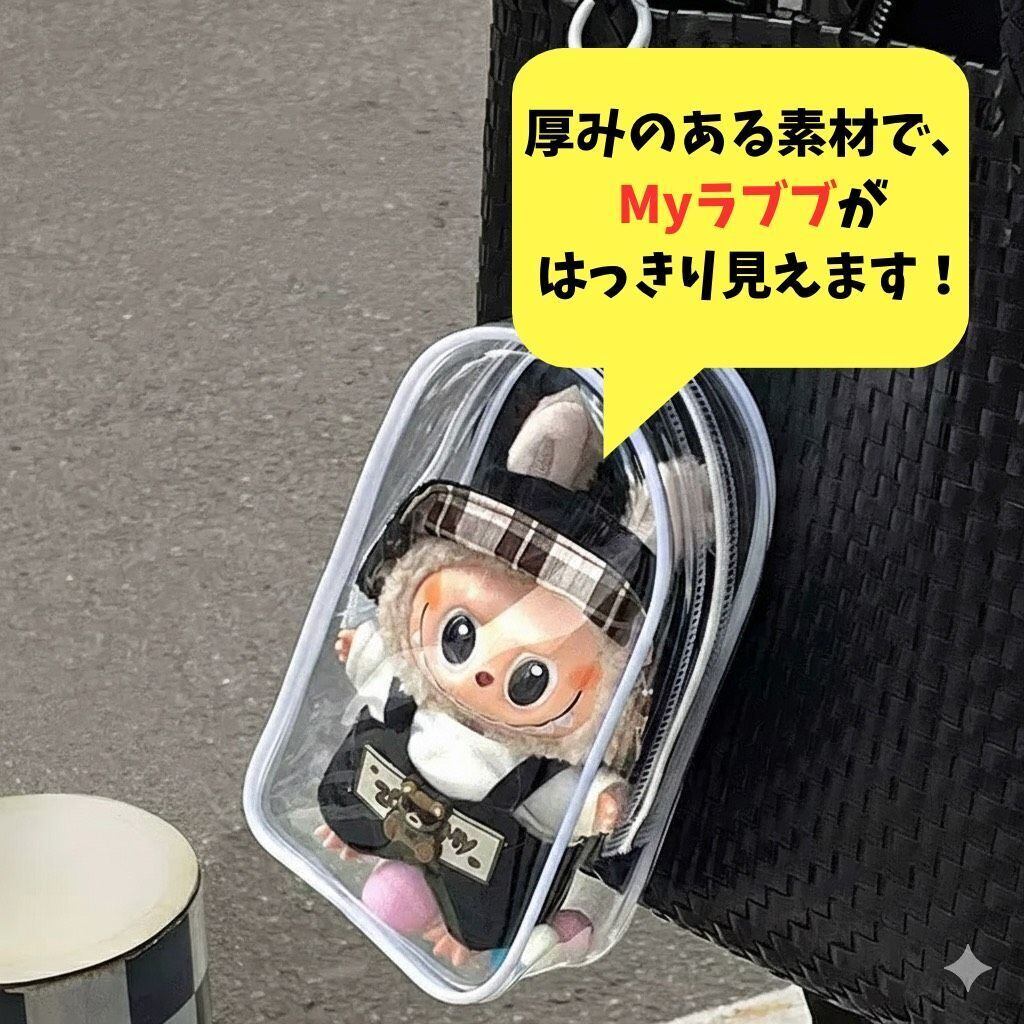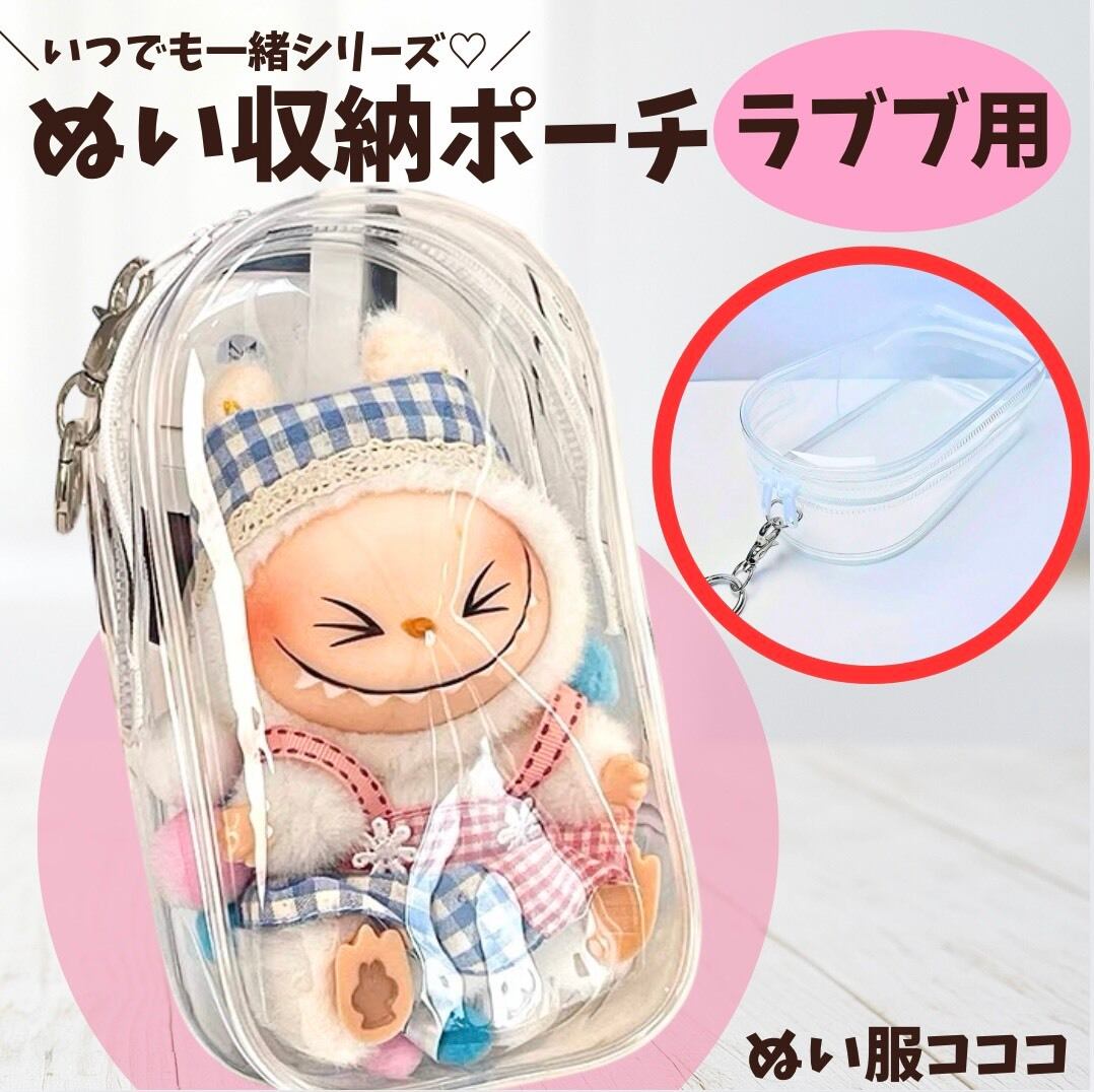 ラブブ 持ち歩き 収納ポーチ 保護ケース クリア グッズ 透明 ぬいポーチ コレクション インテリア ビニール ストラップ付き 推しぬい 推し活グッズ 汚れ防止 雨よけ 白 エナジー ハブシ マカロン 17cm 1世代 2世代 3世代 ぬい服コココ H8420