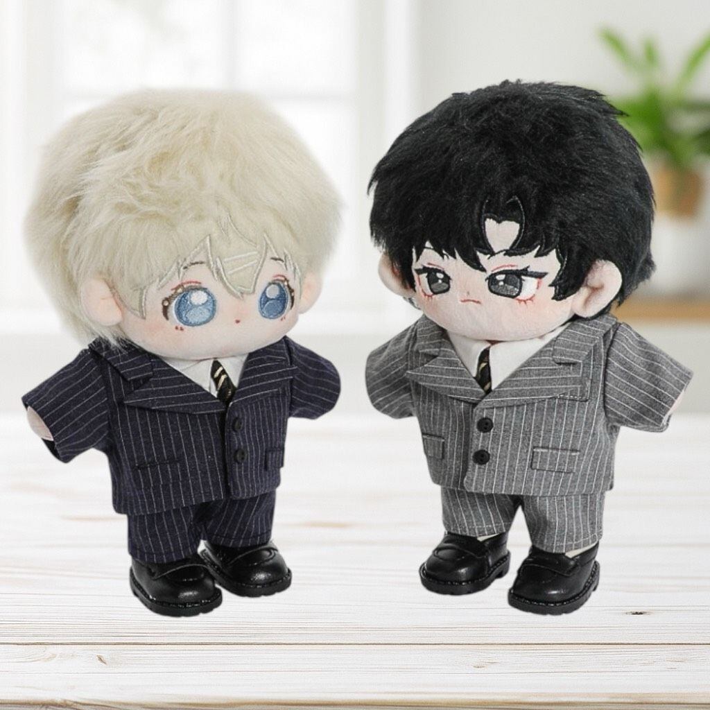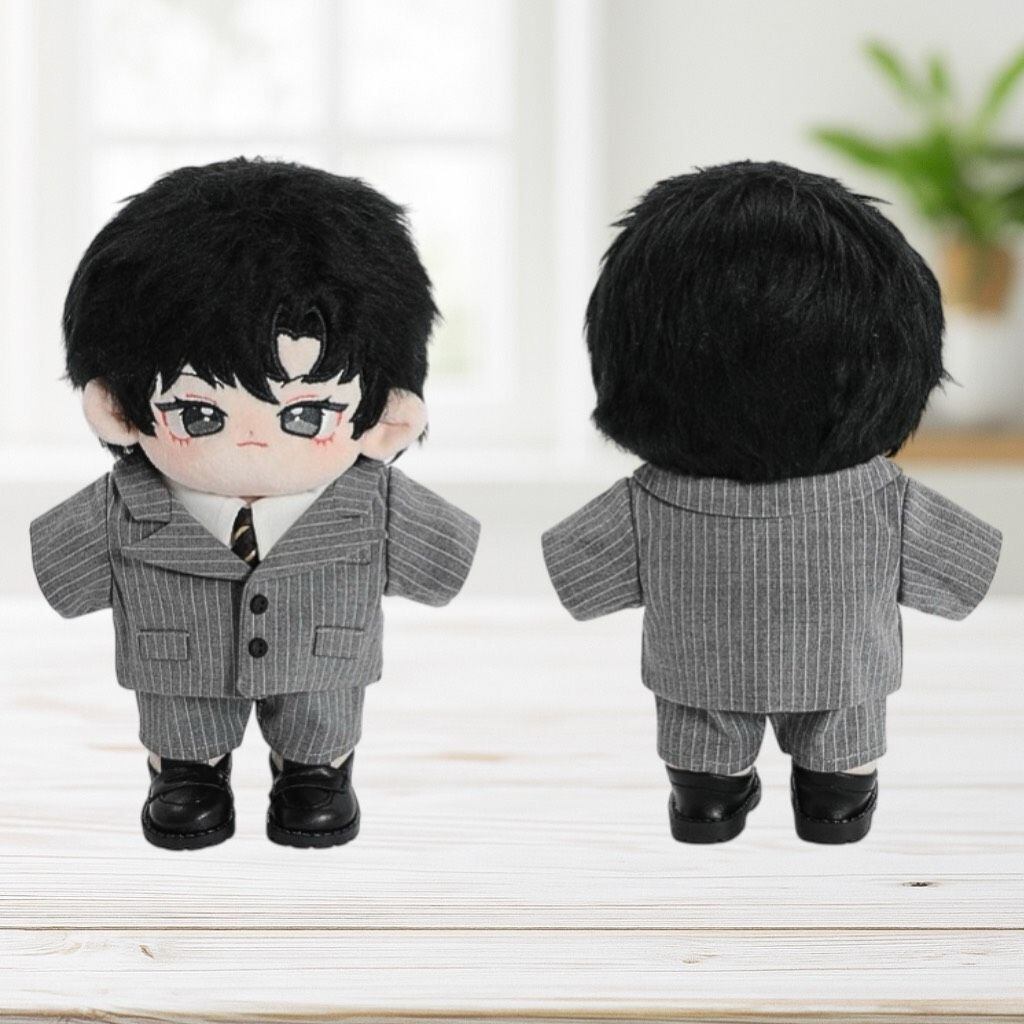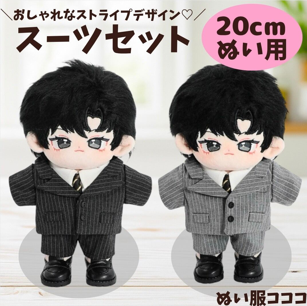 【20cm】 おしゃれストライプデザインのスーツセット シンプル 黒 グレー ぬいぐるみ用 服 着ぐるみ 韓国 かっこいい アイドル 人形 ファッション 着せ替え 萌え ぬい活 推しぬい 棉花娃娃 推し活 ぬい服コココ S127