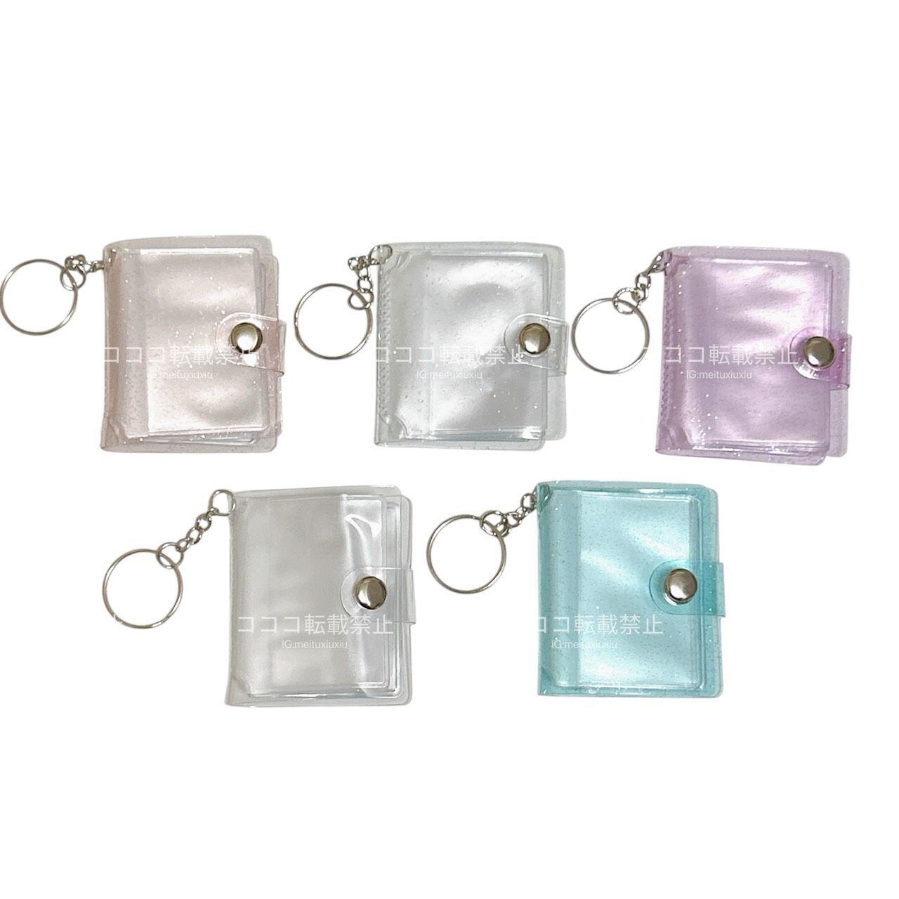 ミニシール帳 キーホルダー アルバム帳 1個 3D キーホルダー リフィル付き シール ボンボンドロップ ダイソー セリア キャンドゥ ラメ入り 写真ケース 記念コイン おまけ 推し活グッズ ブルー ピンク パープル クリア 透明 ぬい服コココ Y328
