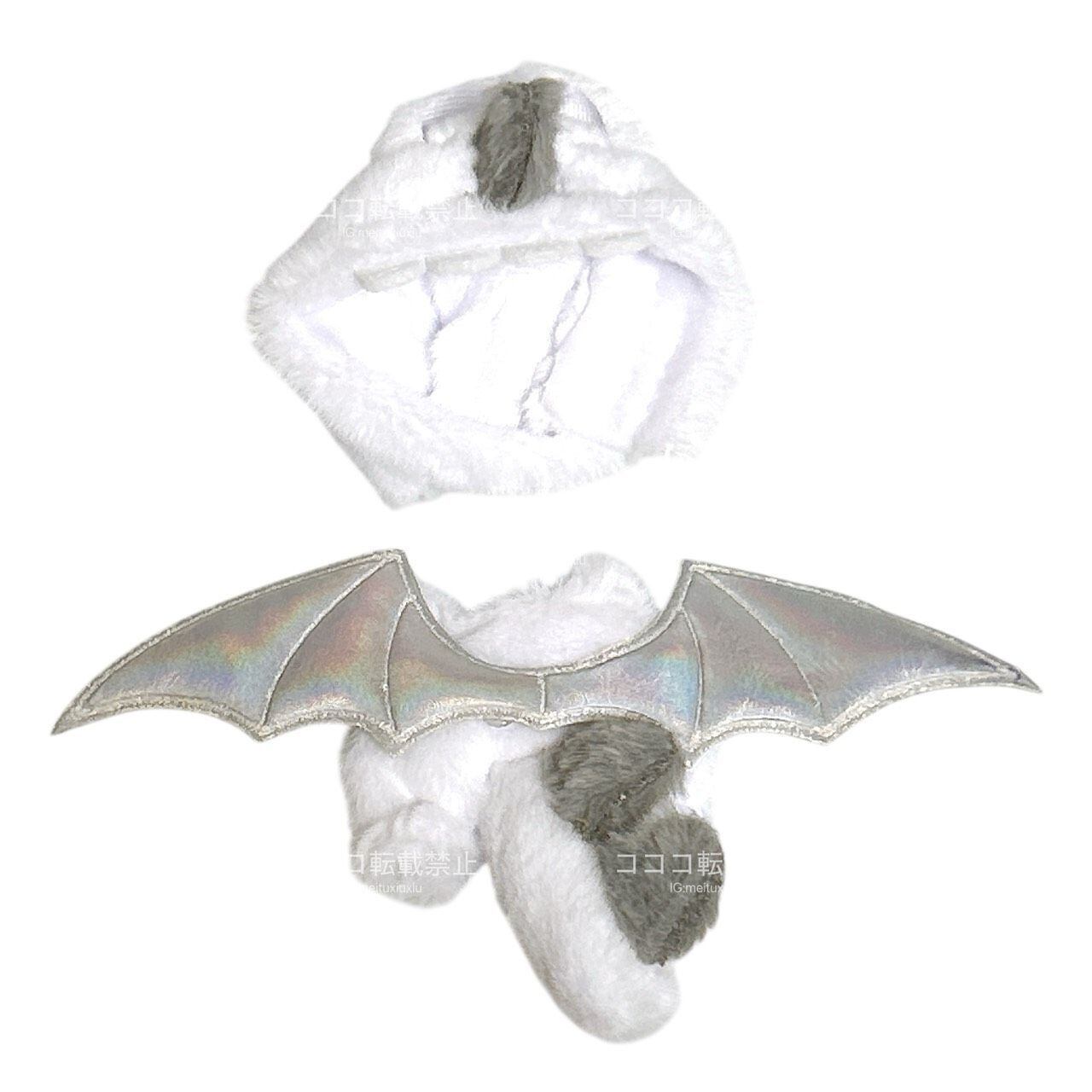 ミニラブブ服 着せ替え mini labubu ドラゴン 恐竜コーデ ジモモ モコモコ 羽根つき 動物 洋服 着ぐるみ ホワイト 白 イニシャル ぬい服コココ R949