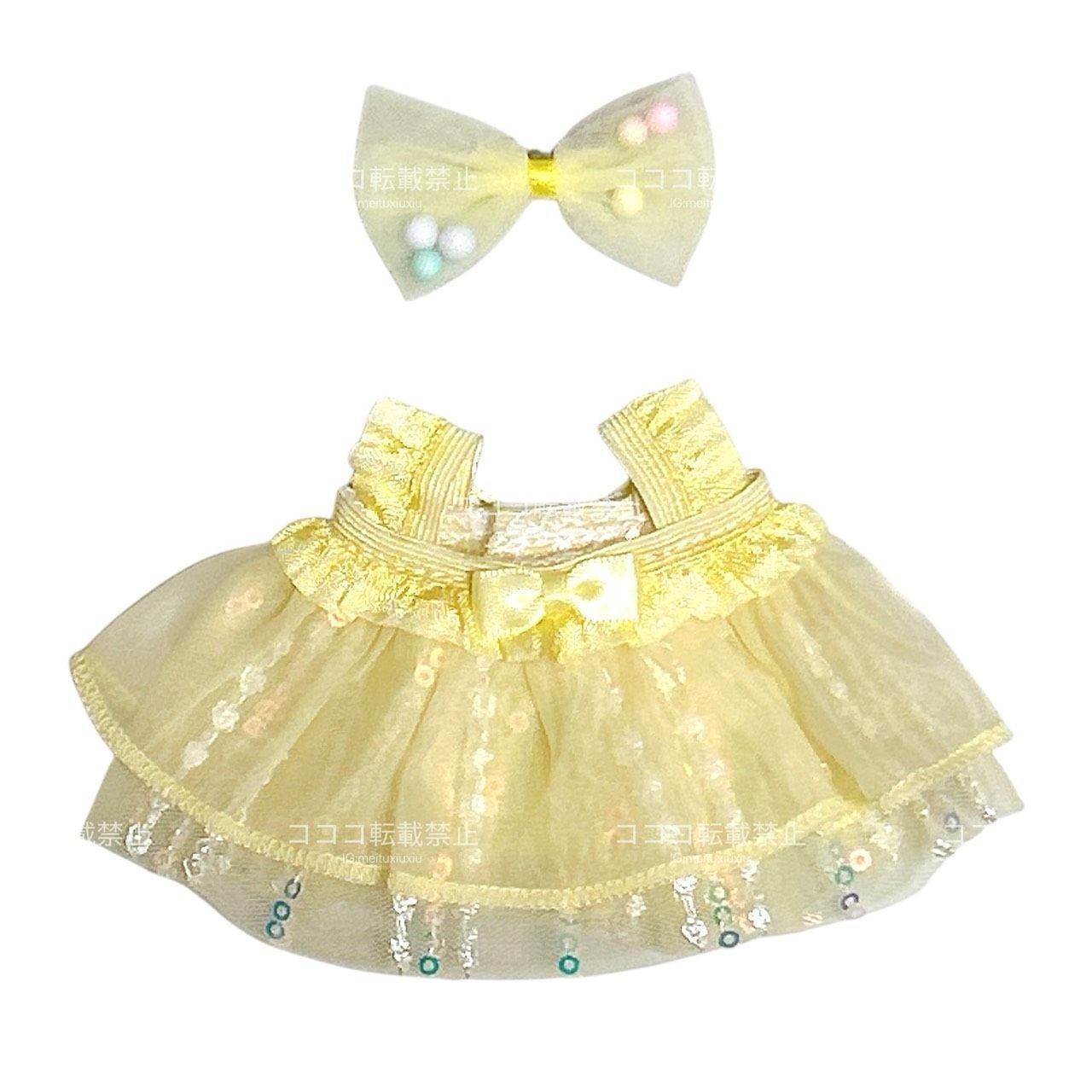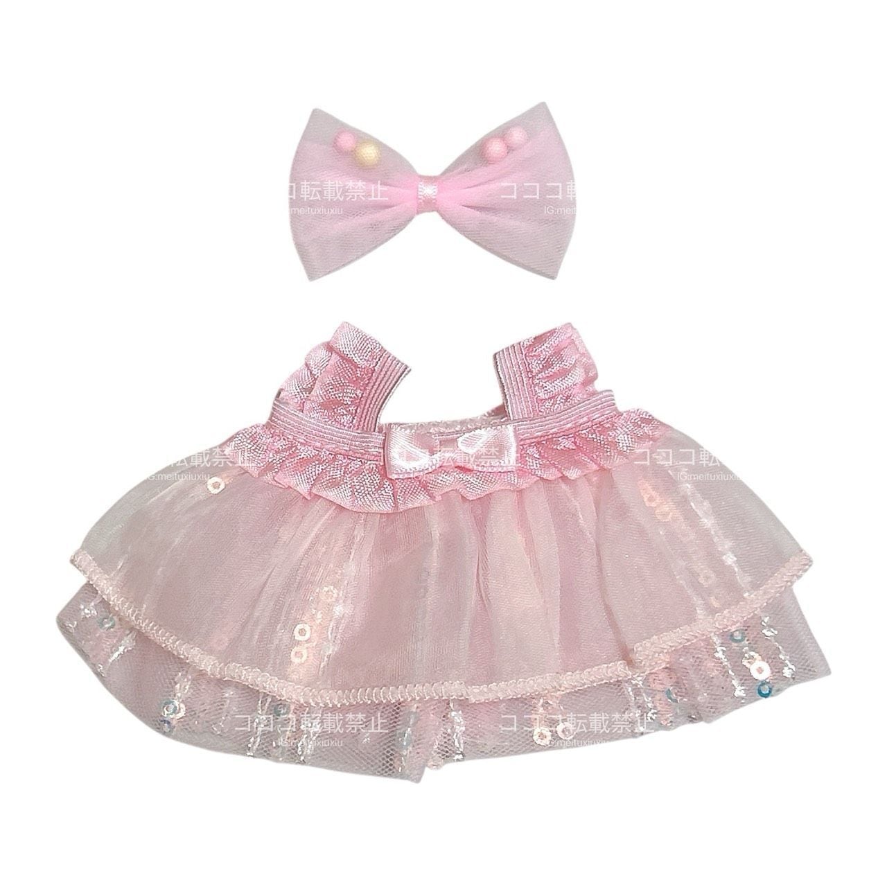 ラブブ 着せ替え服 リボン付きワンピースドレス レース 5色 labubu イエロー パープル ピンク ブルー グリーン スチューム 15〜17cm 一代二代三代 人形 アクセサリー マカロン ハブシ エナジー ぬい服コココ