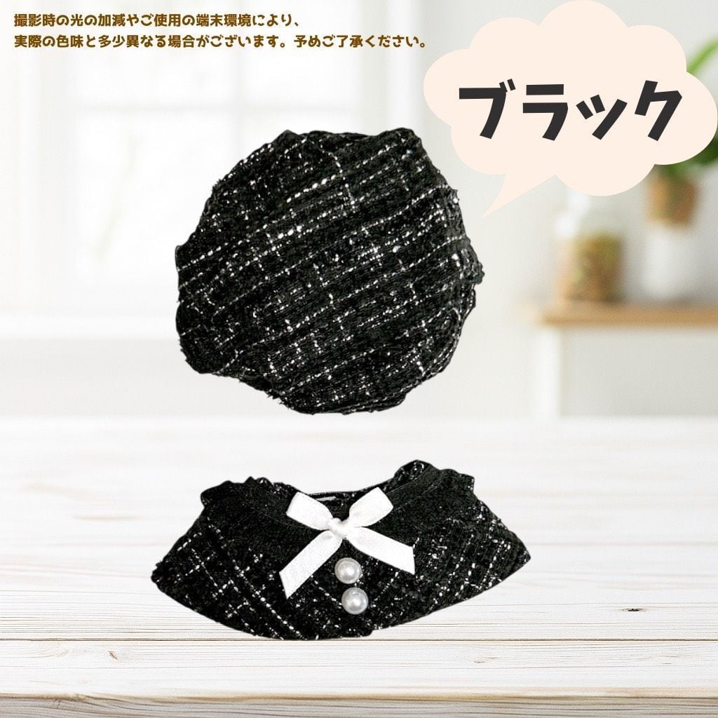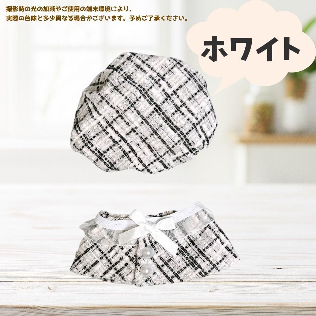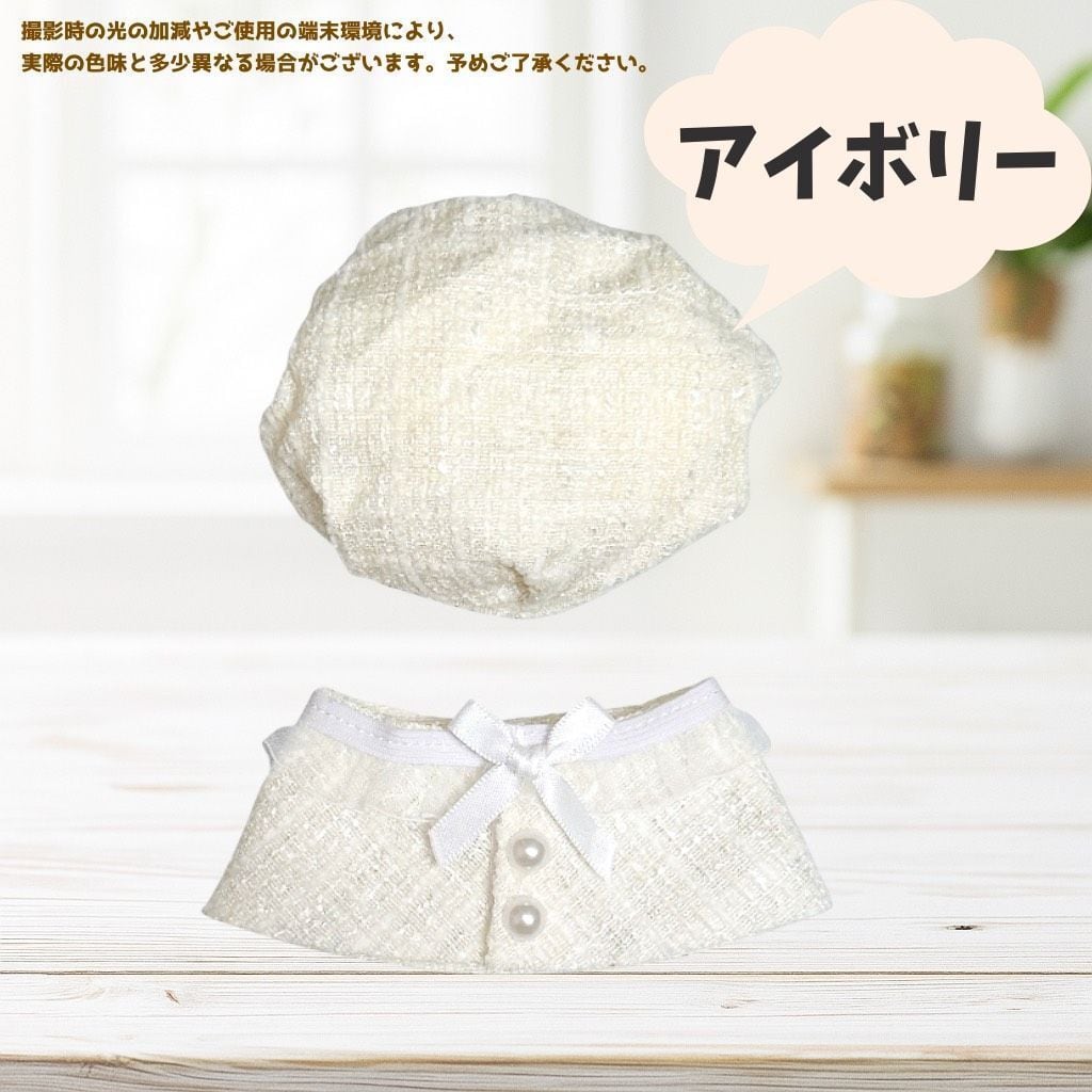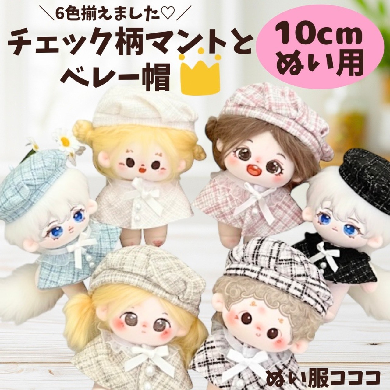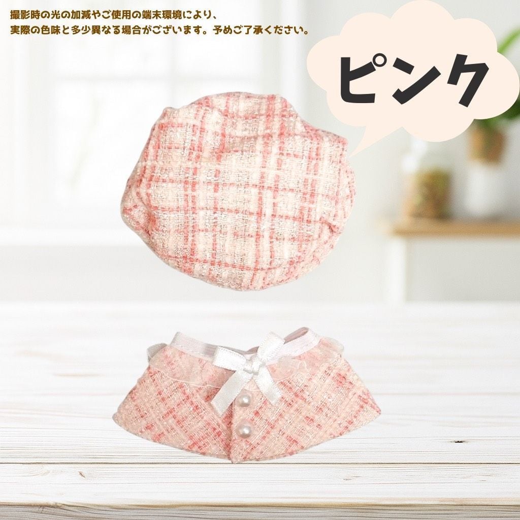 10cm ぬいぐるみ服 チェック柄 ベレー帽 リボン ポンチョマント 6色 ブラック ピンク ホワイト グリーン アイボリー ブルー ツイード 推し活グッズ ちびぐるみ いつぬい にじぱぺっと 12cm ぬい服コココ A382
