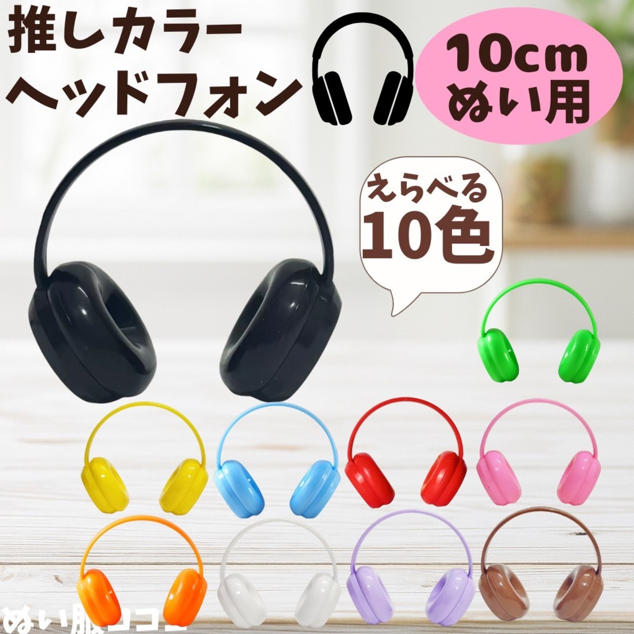 【10cm】 推しカラーヘッドフォン ぬい服 ぬいぐるみ用 小物 ヘッドホン 推し活 黒 茶 白 赤 青 ピンク オレンジ 黄 緑 紫 アイドル ちびぐるみ ちびぬい いつぬい 12cm ぬい活 推しぬい ぬい服コココ G392