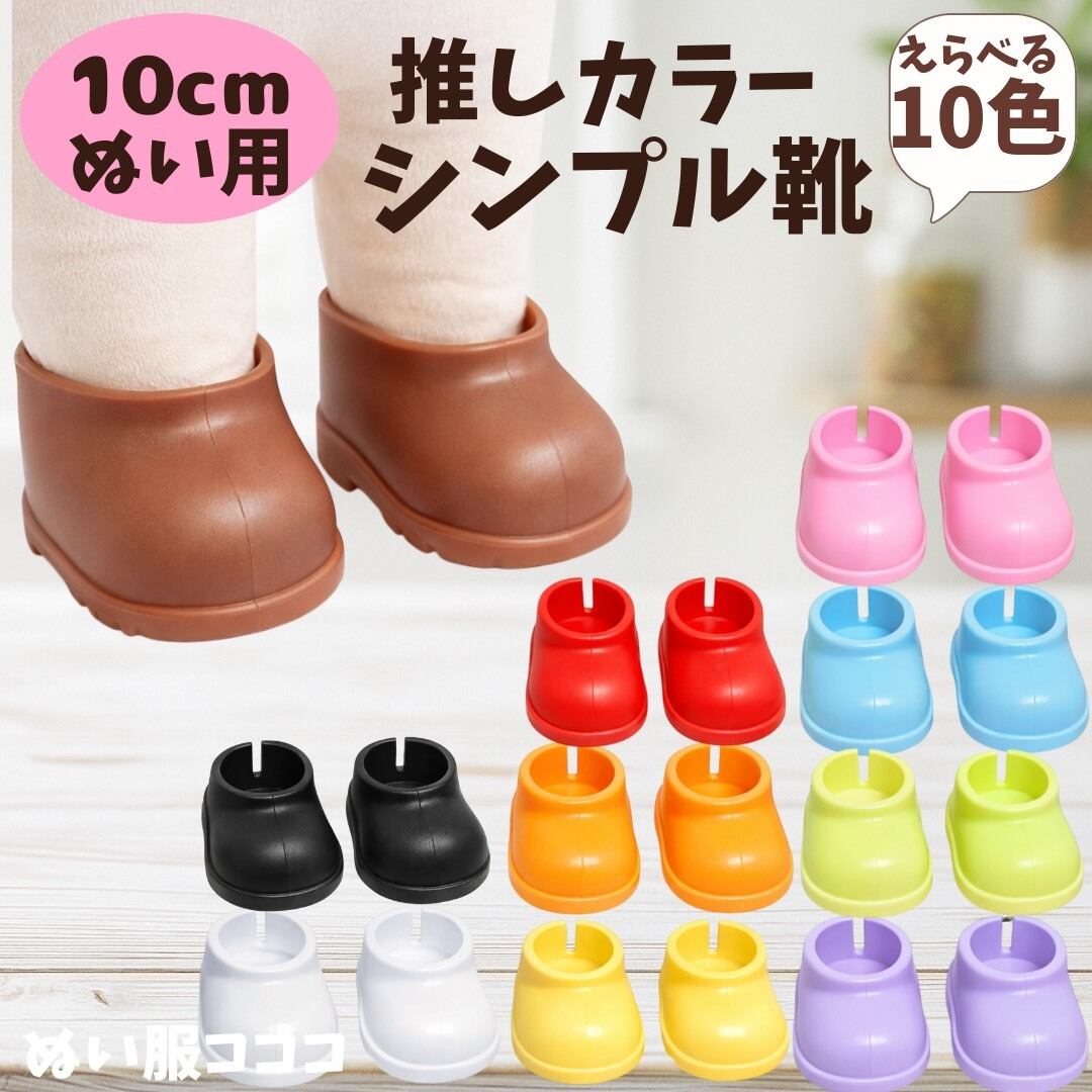 【10cm】 推しカラー シンプル 靴 シューズ ぬいぐるみ用 小物 ブーツ スリッポン 推し活 黒 茶 白 赤 青 ピンク オレンジ 黄 緑 紫 水色 黄緑 アイドル ちびぐるみ ちびぬい 12cm いつぬい ぬい活 推しぬい ぬい服コココ O842