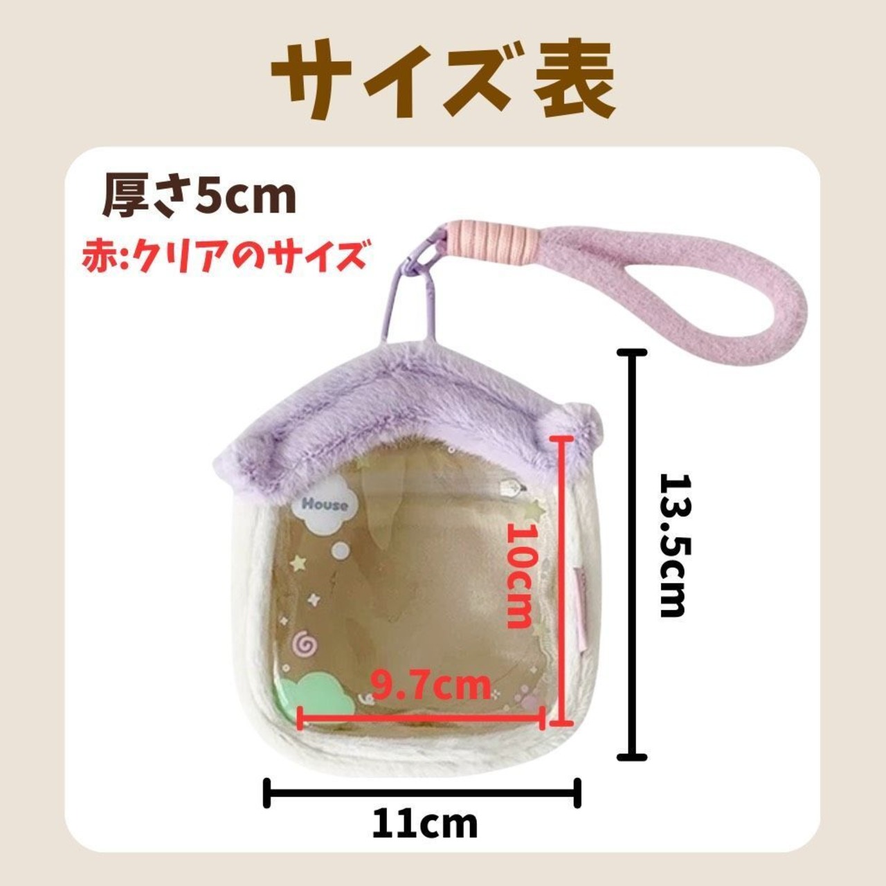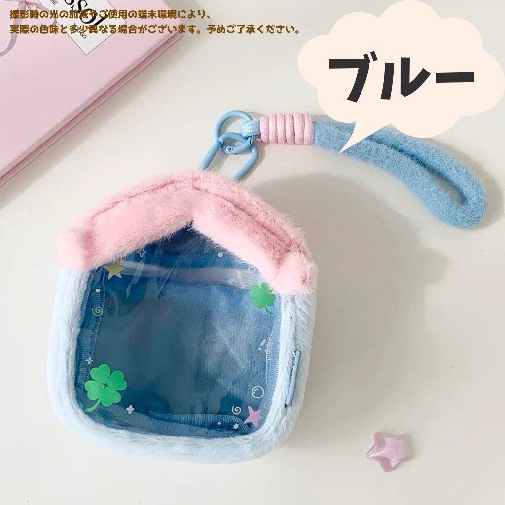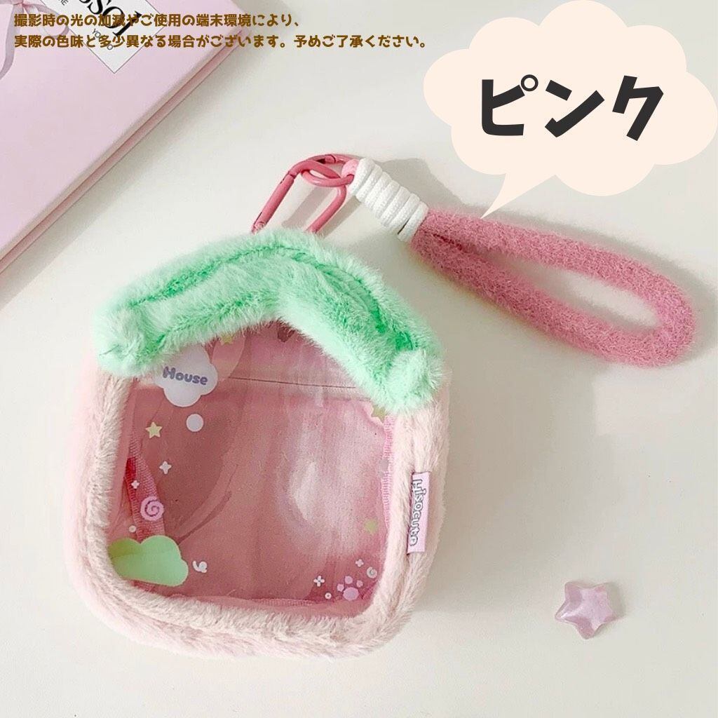 ハウス型 ぬいぐるみポーチ 持ち運び バッグ 透明 痛バッグ クリア 推し活 オタ活 収納 保護 アイドル アニメ マスコット 人形 ぬいポーチ ぬいぐるみ用 お家 5cmー10cm用 カラビナ付き 3色 紫 ピンク 青