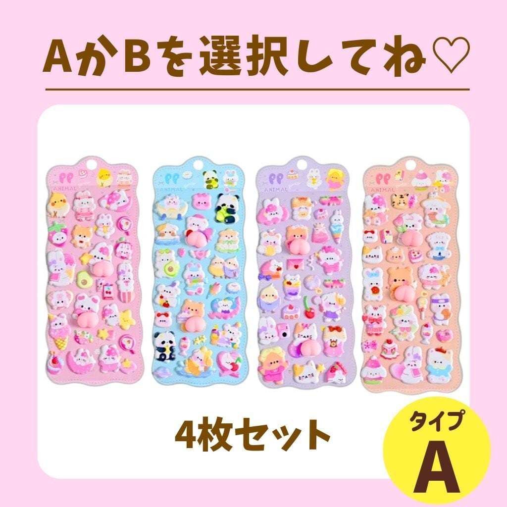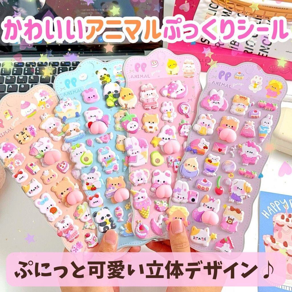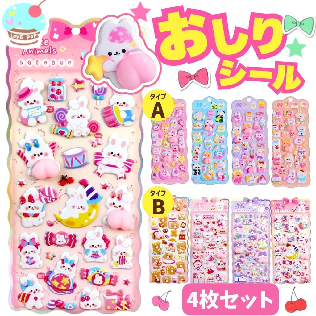 4枚 ぷにぷに おしり シール スクイーズ お尻 立体 泡ステッカー 3D うさぎ くま ねこ 動物 キャラクターご褒美シール デコレーション ステッカーデコ スマホ ケース ふわふわ もちもち デコレーション ストレス 解消 癒し グッズ ギフト