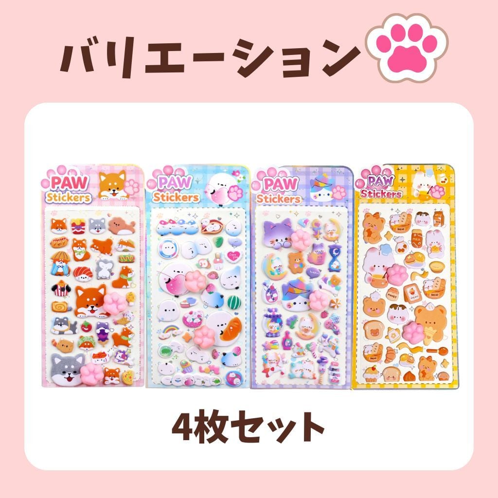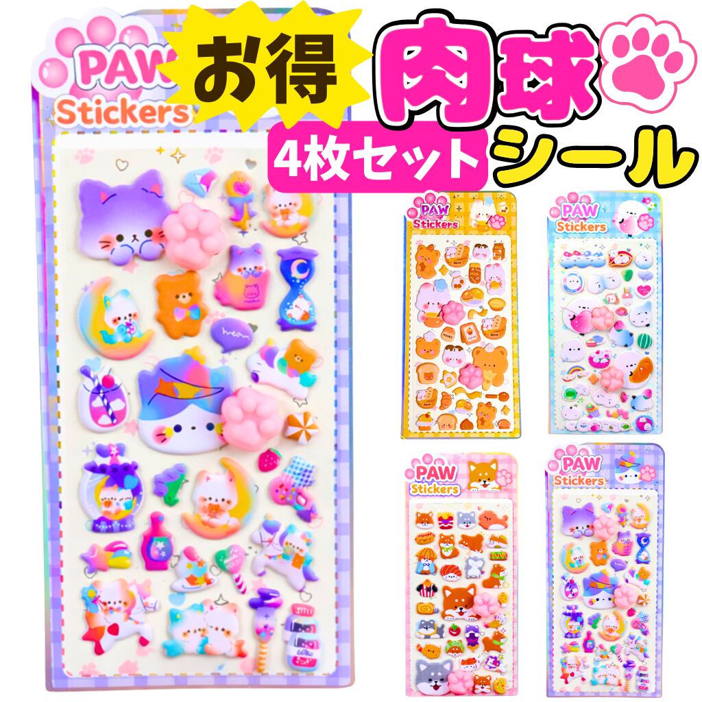 【お得な4枚セット】肉球 ぷにぷに シール 動物 もちプニュー ステッカー スクイーズ にくきゅう どうぶつ おしり マシュマロ 子供 いぬ ねこ コーギー シマエナガ くま とり かわいい むにむに まとめ売り セール