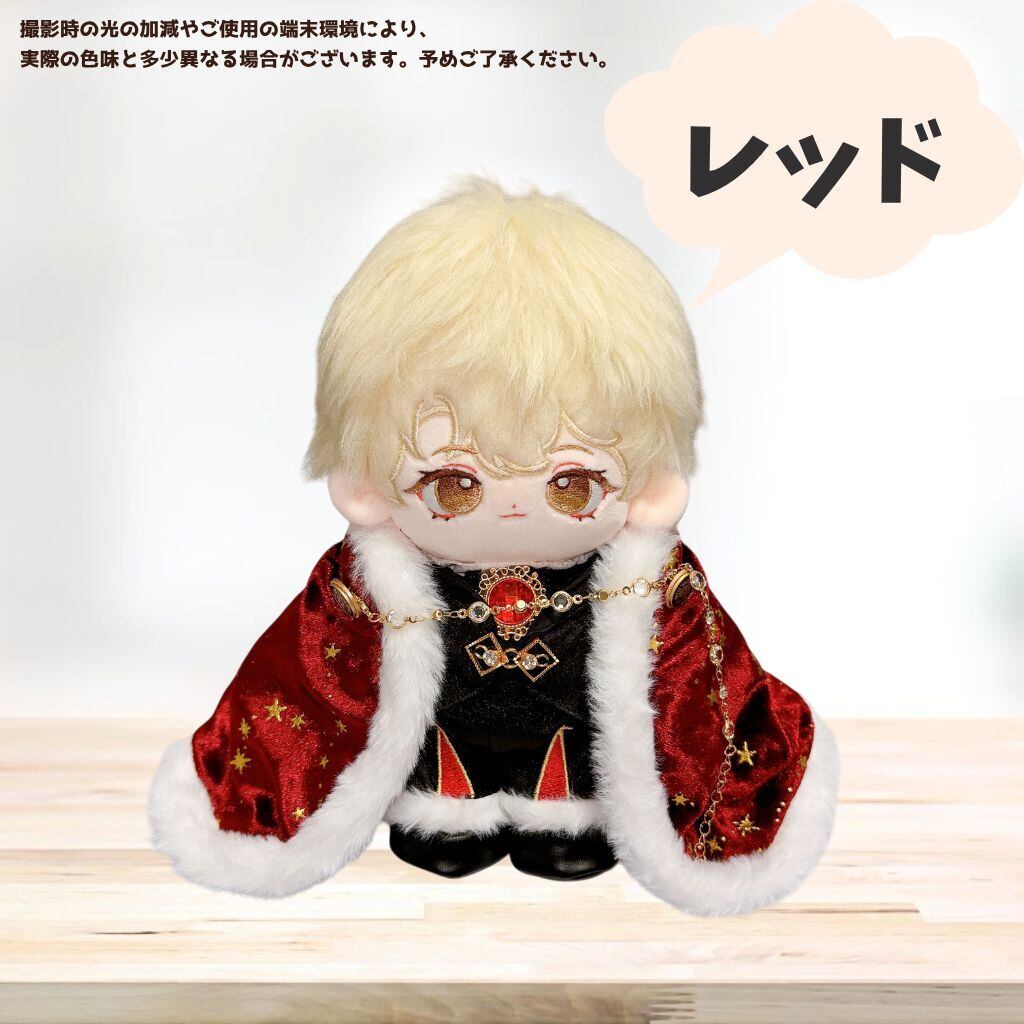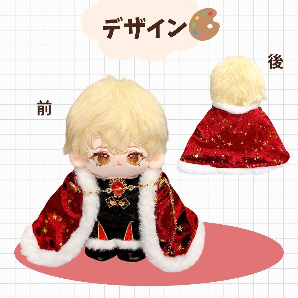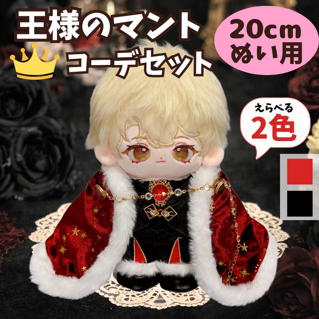 ぬい服 20cm 王様 コーデセット 豪華6点 マント クラウン風 王子衣装 推し活 着せ替え ぬいぐるみ服 赤 黒 星柄 ネックレス付き