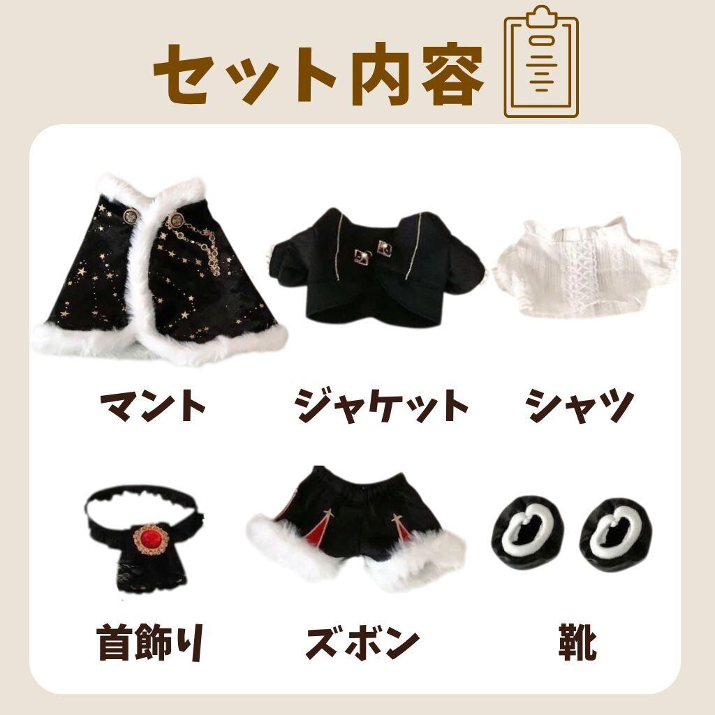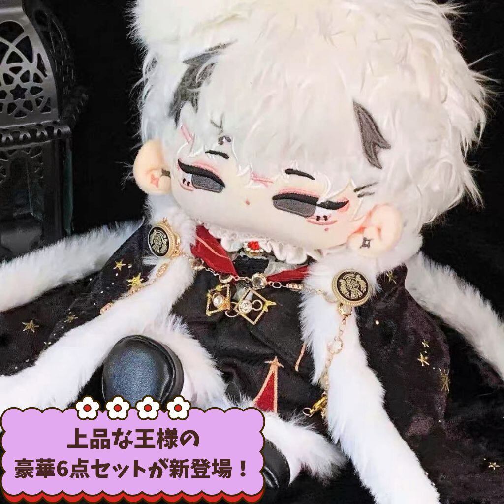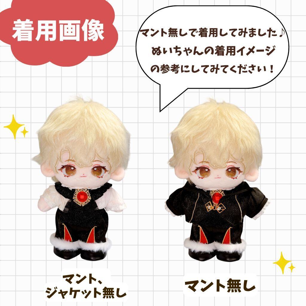 ぬい服 20cm 王様 コーデセット 豪華6点 マント クラウン風 王子衣装 推し活 着せ替え ぬいぐるみ服 赤 黒 星柄 ネックレス付き