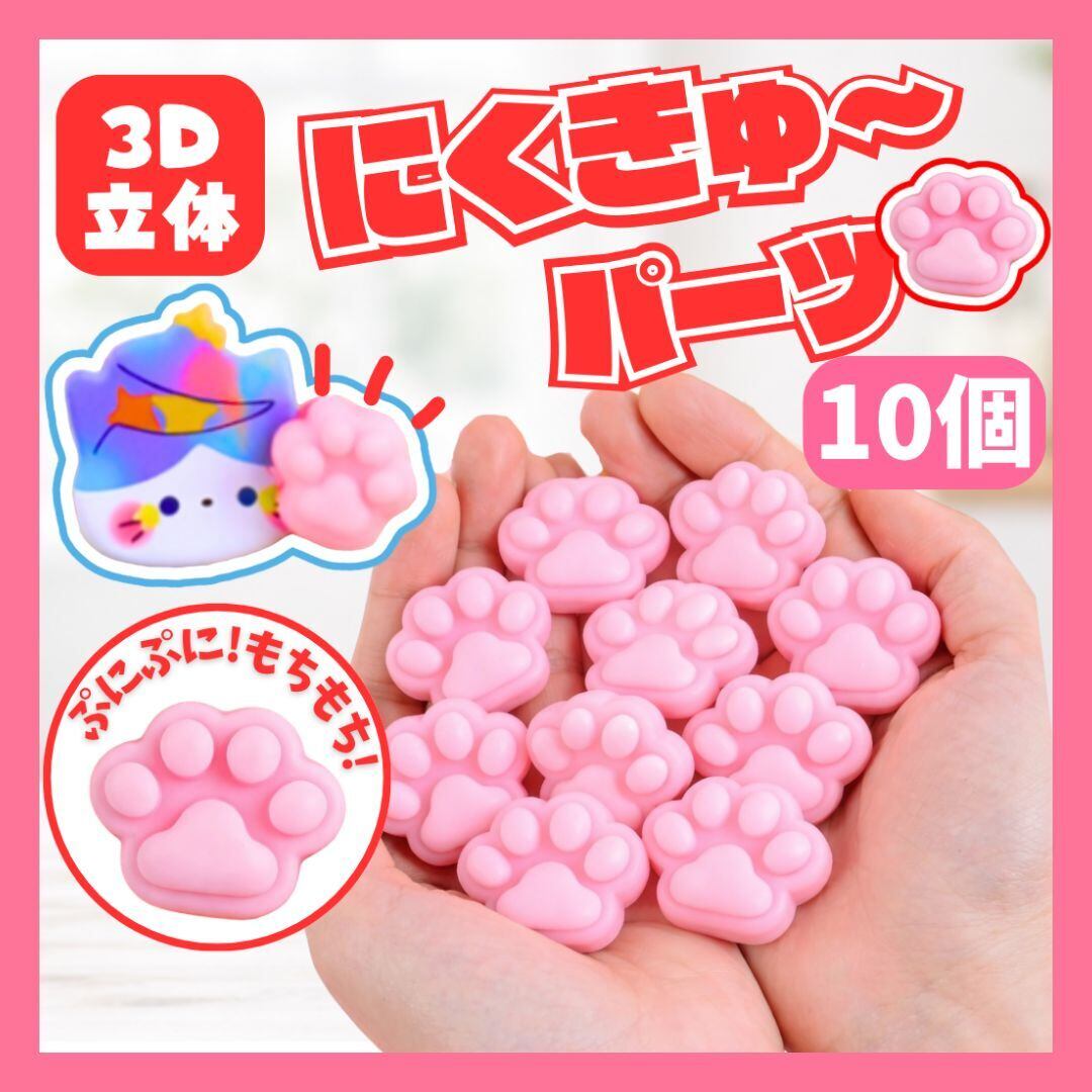 【10個セット】 肉球シール風 デコパーツ スクイーズ 肉球パーツ 粘着なし にくきゅー部分のみ ぷにぷに 立体 デコレーション モチーフ かわいい 雑貨 手帳 シール帳 スマホ DIY デコ素材 まとめ売り ピンク かわいい
