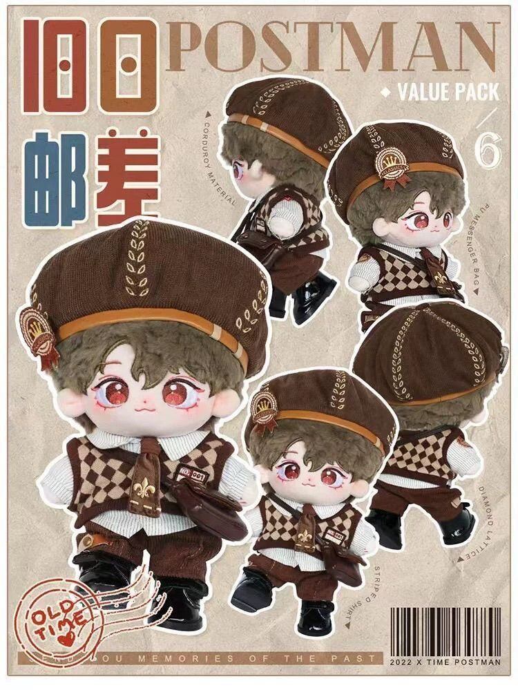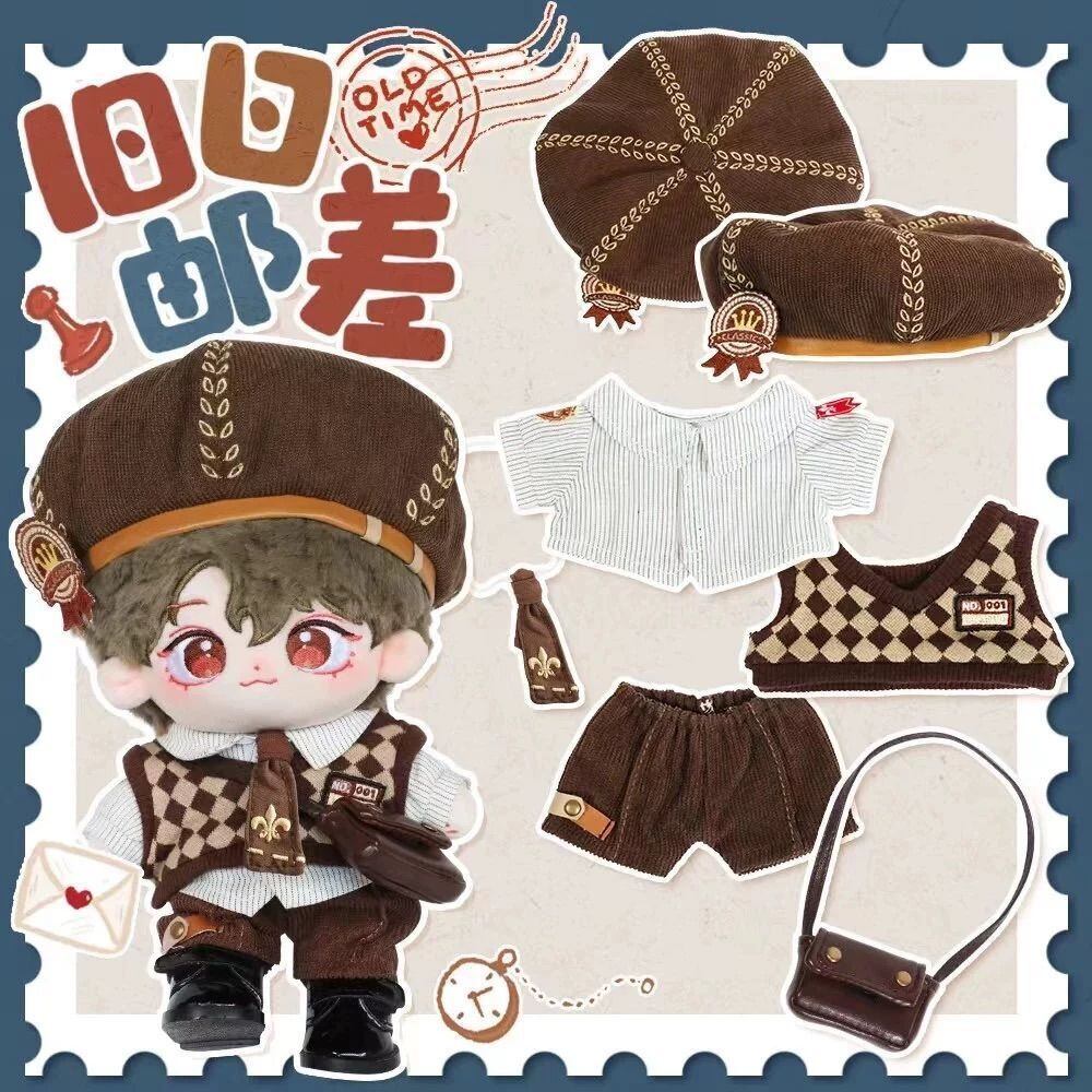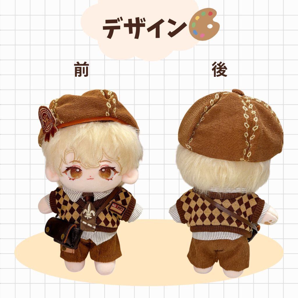 ぬい服 20cm 名探偵 コーデセット 豪華6点 ブラウン 茶色 コスチューム 推し活 着せ替え ぬいぐるみ服 チェック柄 ベレー帽子 ベスト シャツ ズボン ネクタイ 鞄 バッグ 小物 コーデセット レトロ 英国風