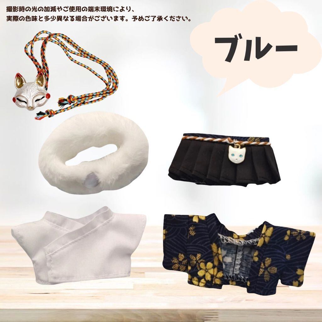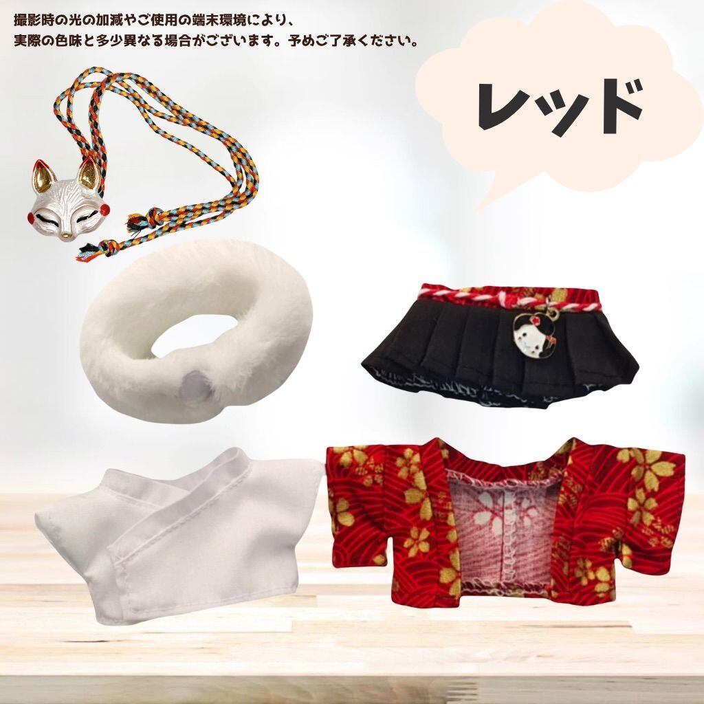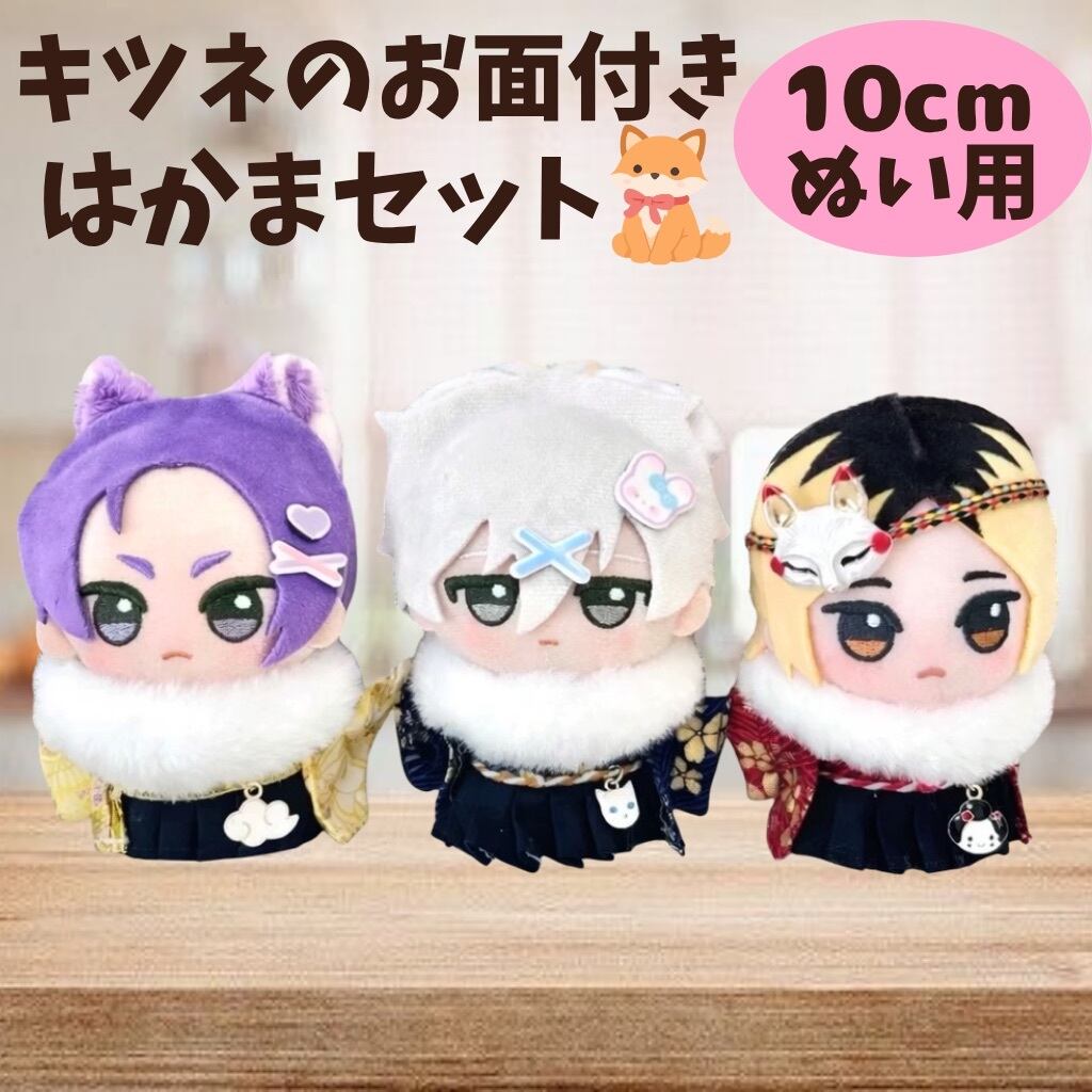 10cmぬい服 チャーム付き 袴服 着物 和装 セット 羽織 和柄 キツネのお面付き はかま 赤青黄 羽織 ファー お正月 式 着ぐるみ服 ぬいぐるみ用 服 お出かけ ちびぬいぐるみ マスコット 12cm ぬい活 推しぬい 小物
