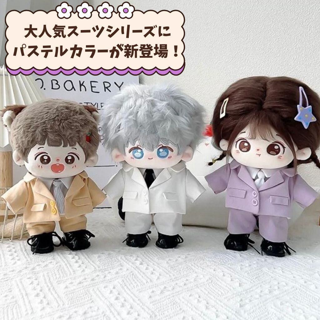 ぬい服 20cm カラースーツ コーデセット ぬいぐるみ服 推しぬい 衣装 パープル ブルー ホワイト ブラック アイドル 推し活