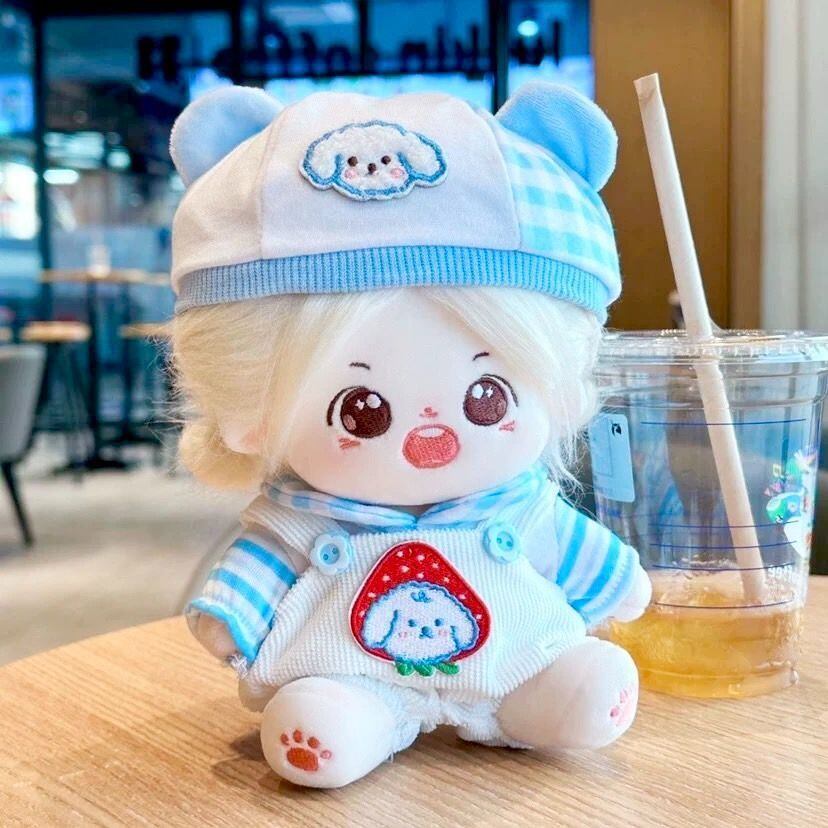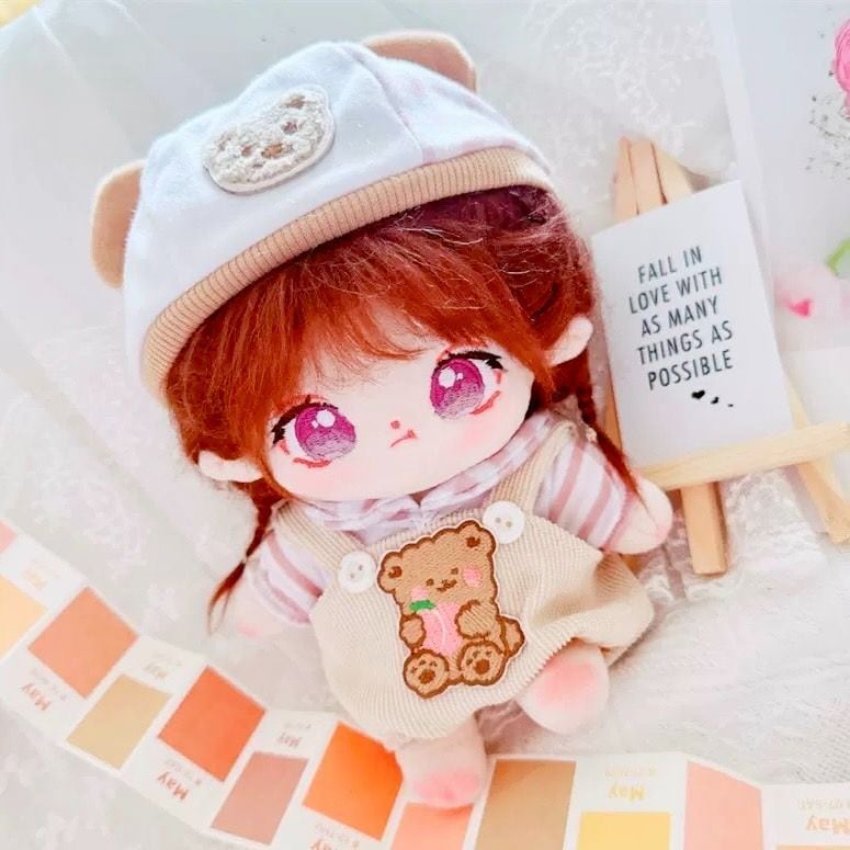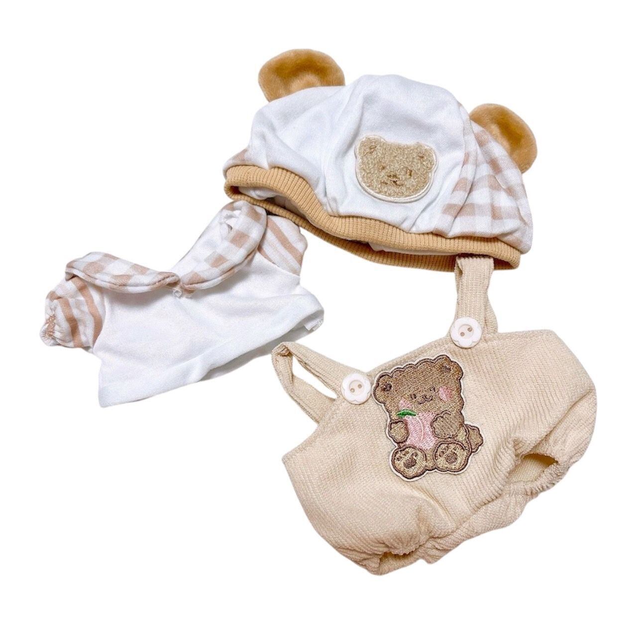 【20cmぬい服】茶色と水色の動物柄の帽子とオーバーオール くま いぬ かわいい アイドル ぬいぐるみ用 服 着ぐるみ ぬい 日常服人形 ファッション 着せ替え 萌え ぬい活 推しぬい 棉花娃娃 推し活
