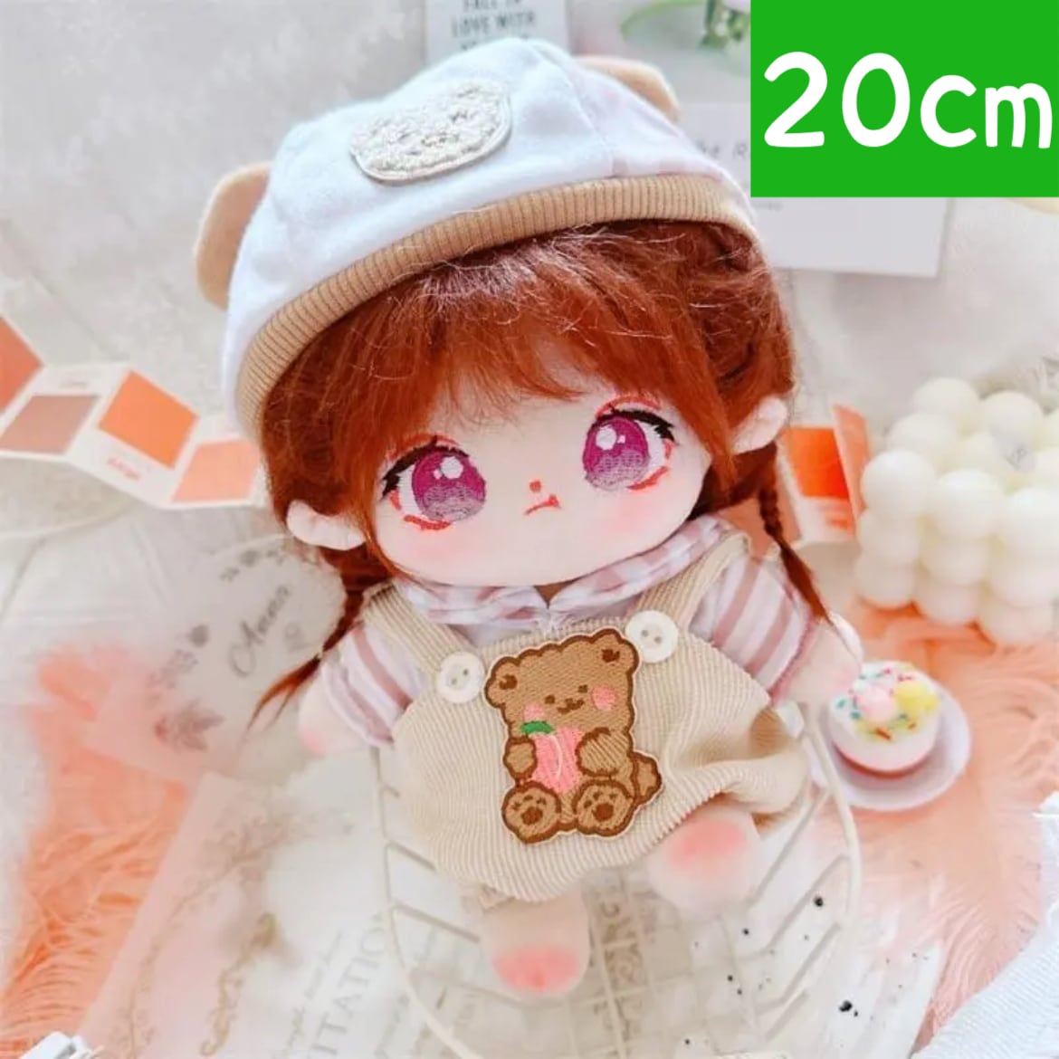 【20cmぬい服】茶色のクマ柄帽子とオーバーオール♡