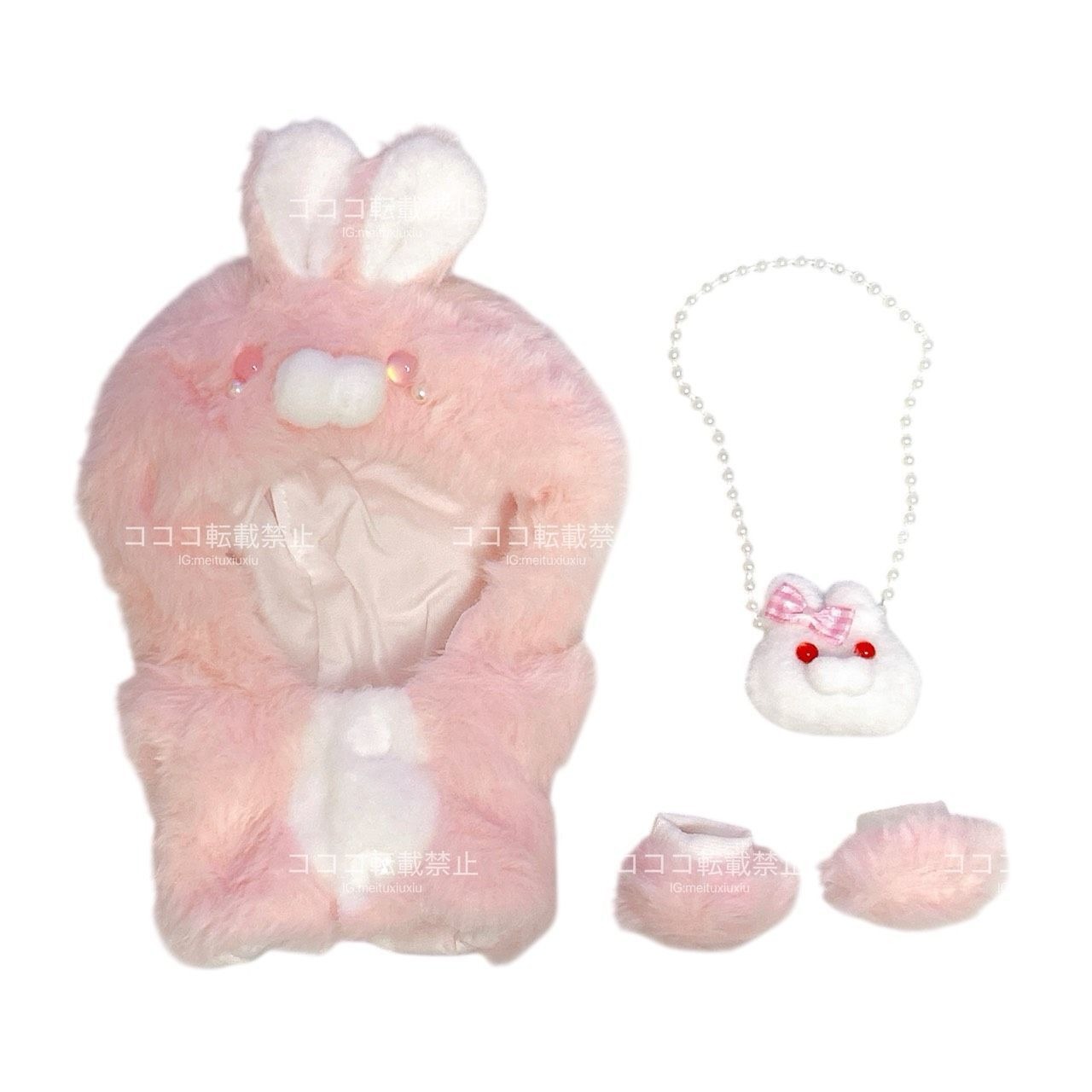 【20cmぬい服】 かわいい くま うさぎ 着ぐるみ ぬいぐるみ用 服 着せ替え お洋服 ホワイト ピンク 白 ぬい 日常服人形 ファッション 着せ替え ぬい活 推しぬい 推し活 ぬい服コココ D933