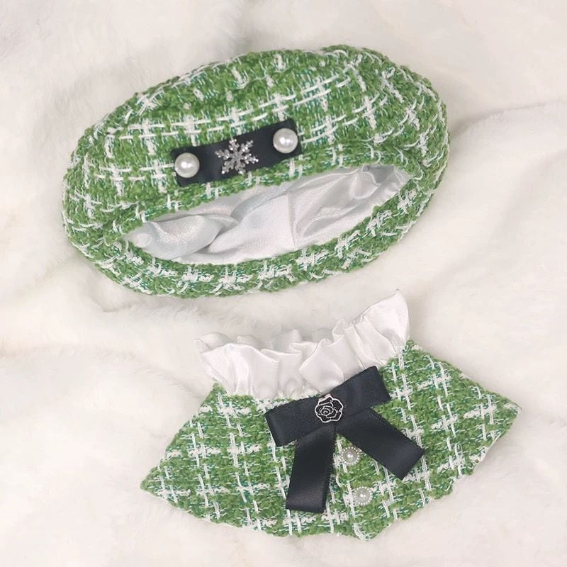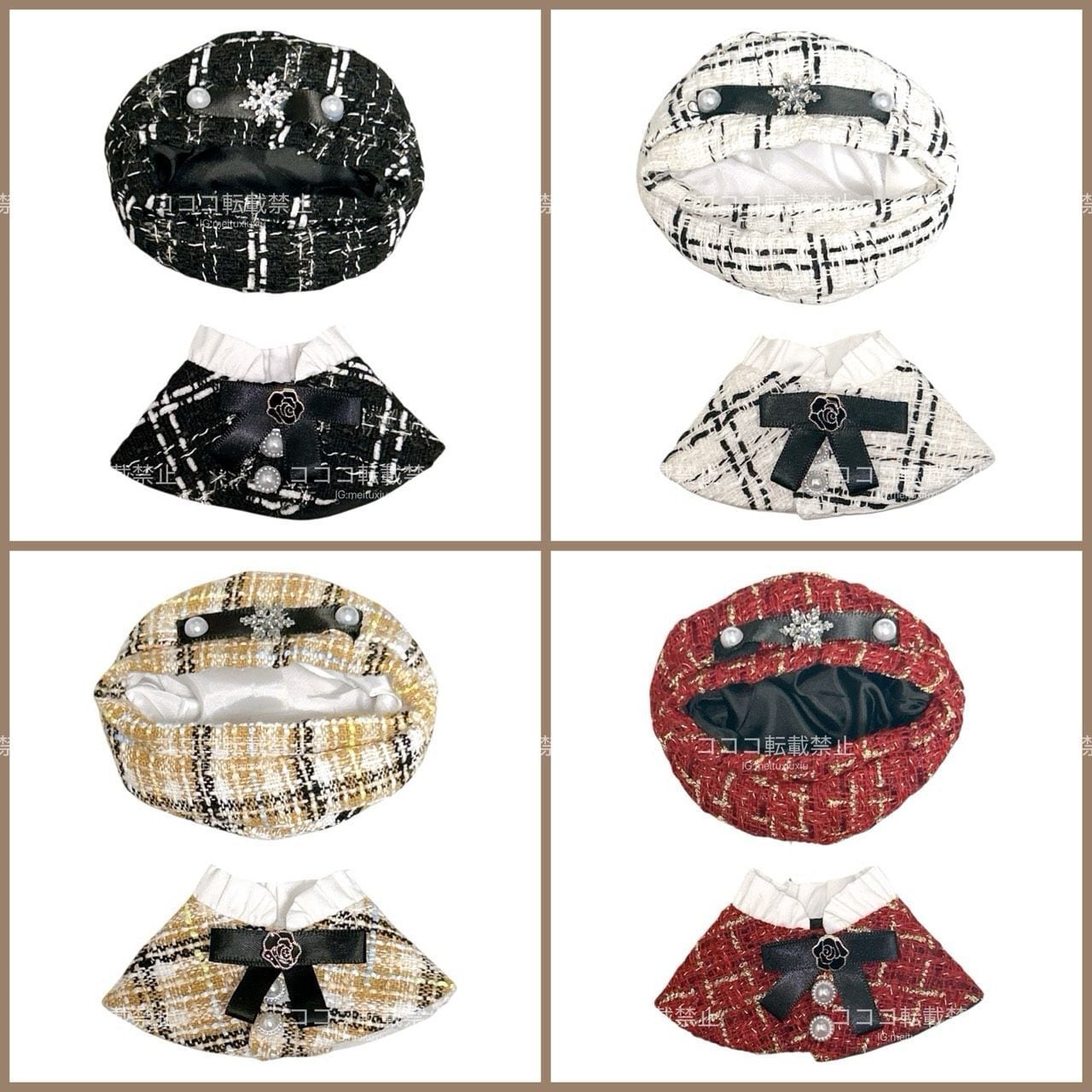【10cm】ツイード チェック柄 ポンチョ マント ベレー帽 セット 7色 着ぐるみ ぬい服 ぬいぐるみ 全身 ぬいぐるみ服 ちびぐるみ にじぱぺっと いつぬい きぐるみ あんスタ 10~12cm 着ぐるみ