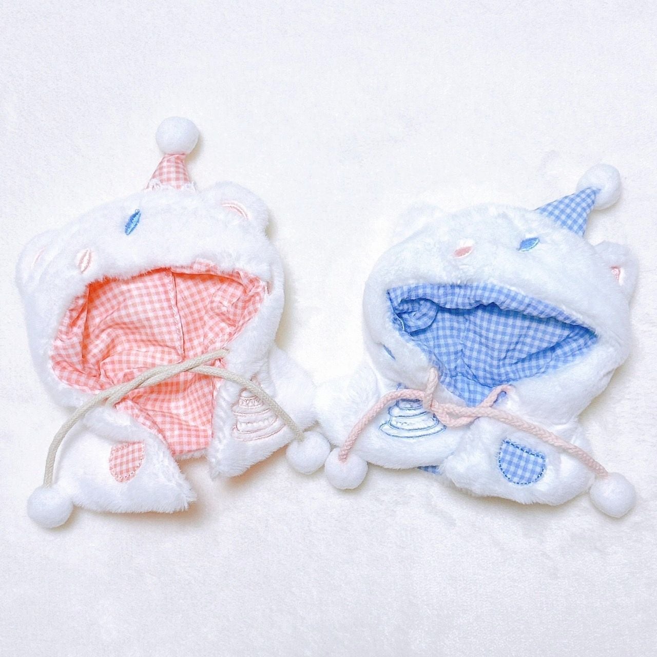 ぬい服 10cm ポンチョ くま耳 もこもこ ブルー ピンク ぬい活 推しぬい ぬいぐるみ用 にじぱぺっと いつぬい 10~12cm ぬい活 棉花娃娃 ちびぐるみ ぬい服コココ